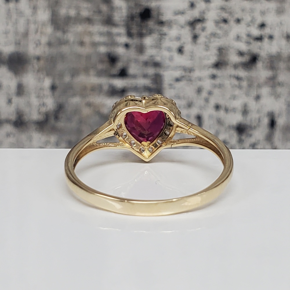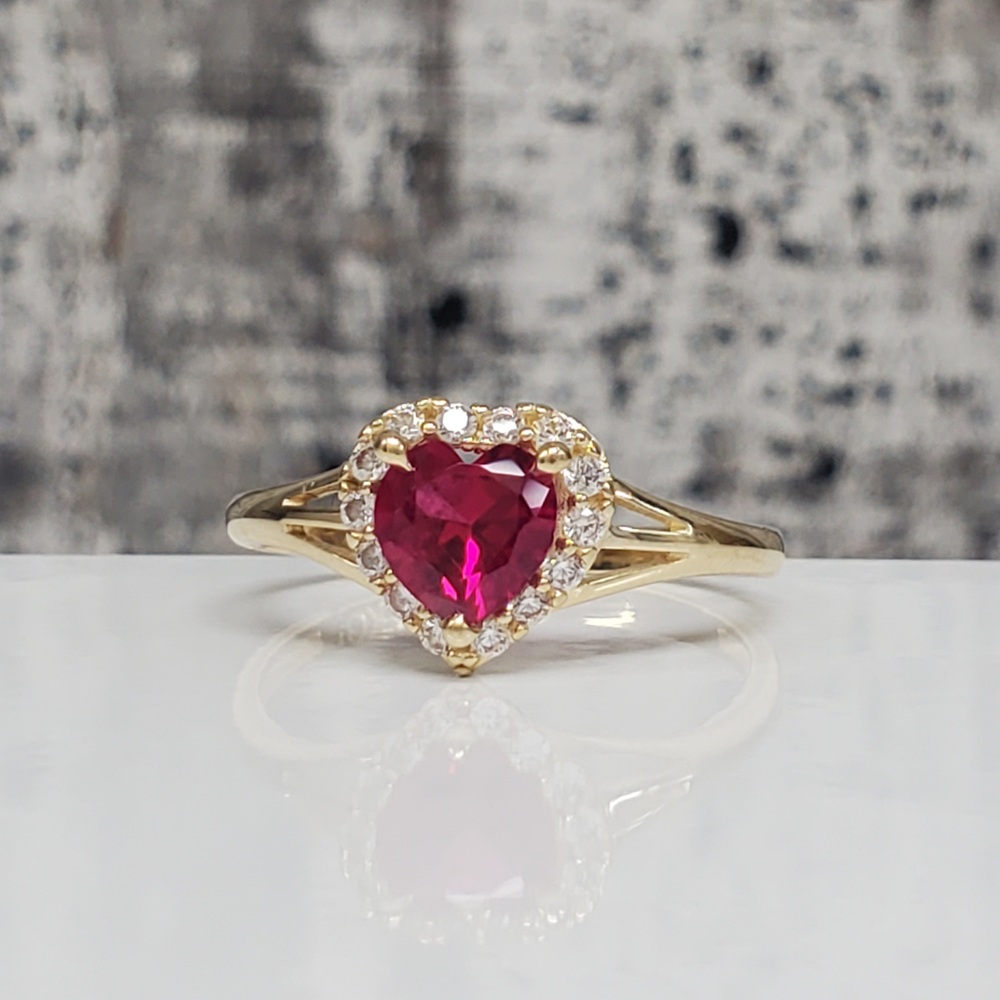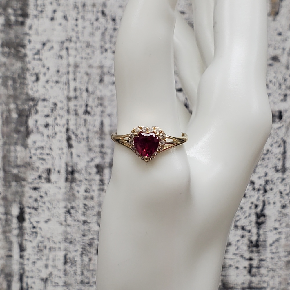 We have this stunning 14K Synth Ruby Heart + CZ Ring For sale!