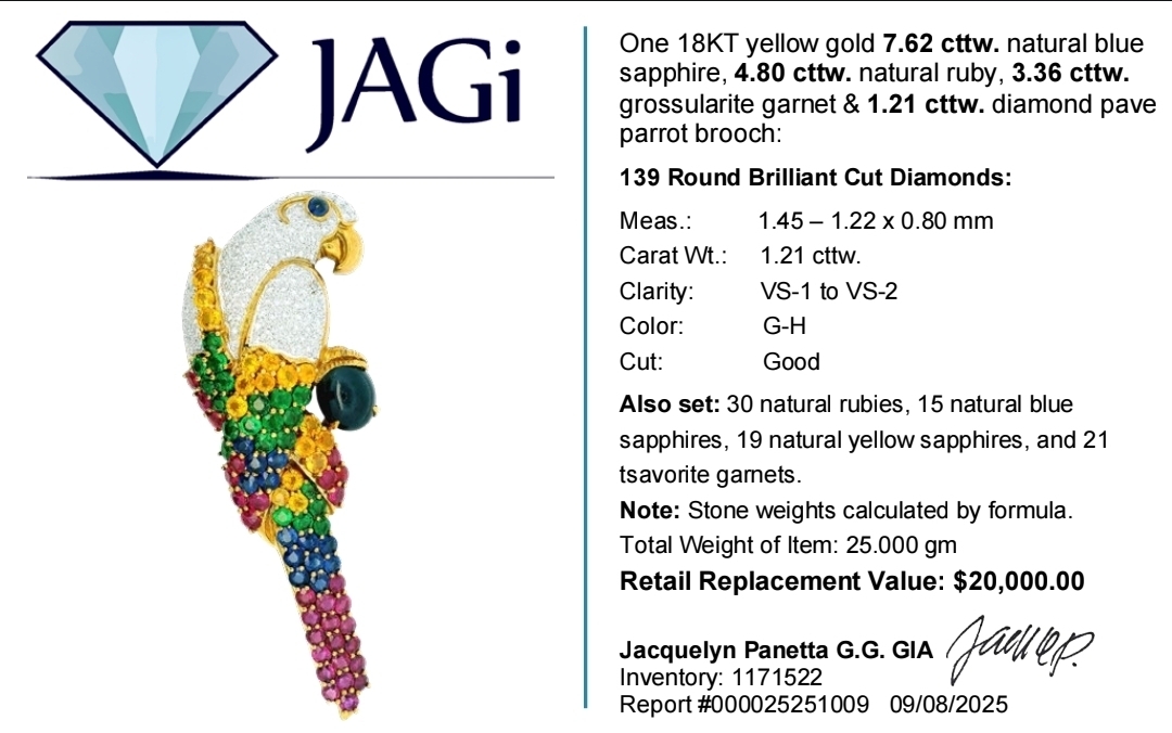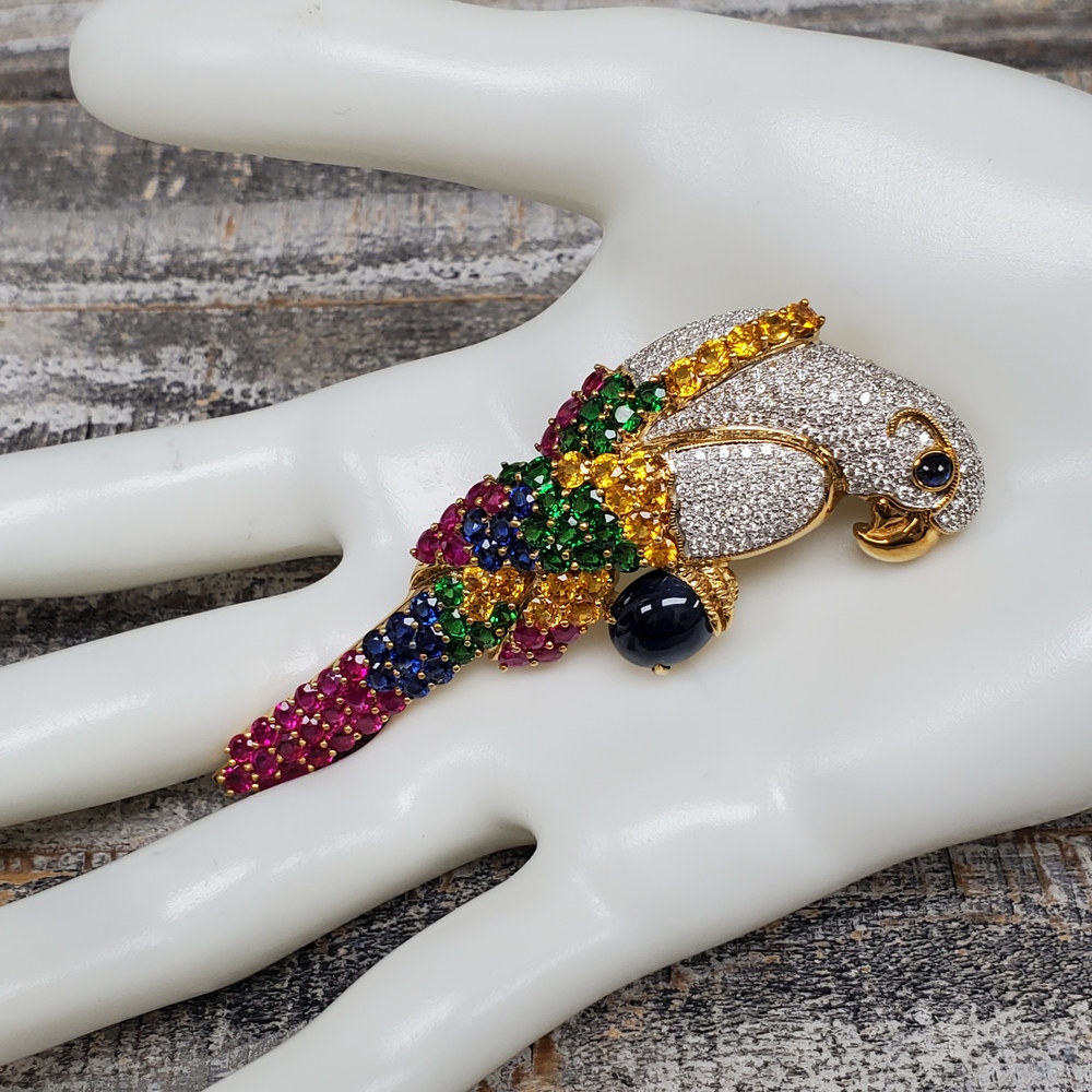Diamond & Sapphire Multi Colored Stone Parrot Brooch Pin | Dynasty Jewelry and Loan