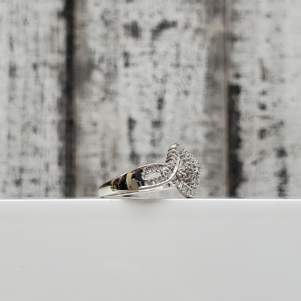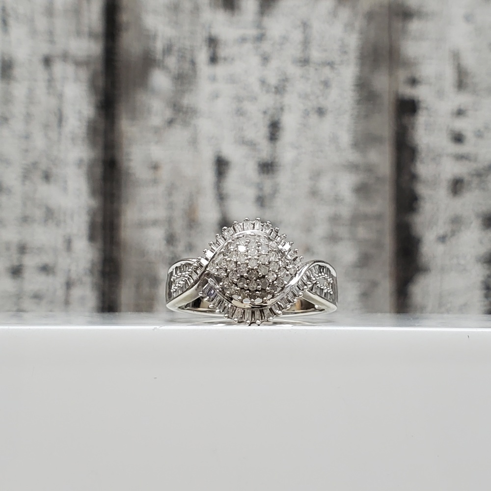 Carat Total Weight: Est. .75ctw Round Brilliant Diamonds + Baguette Diamonds