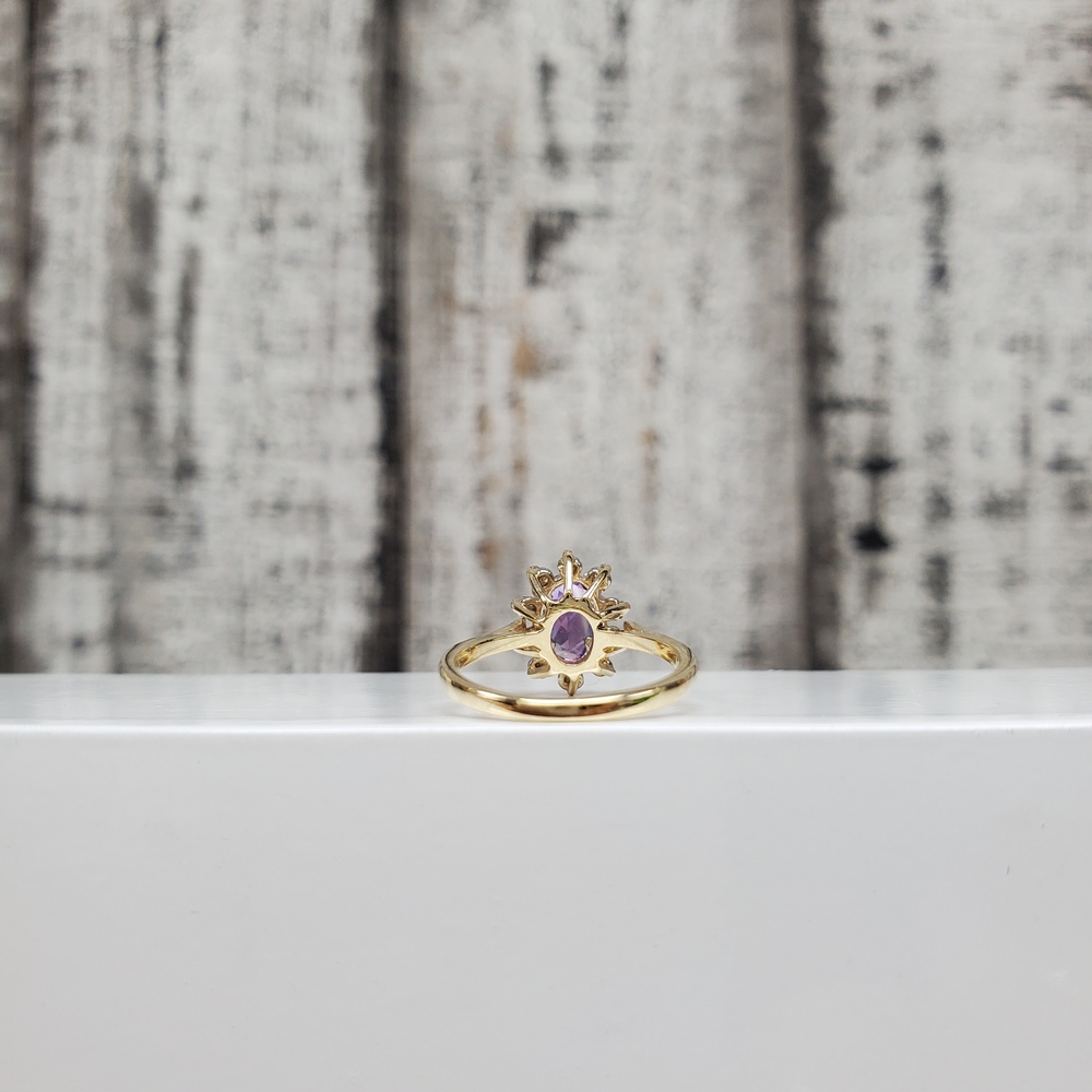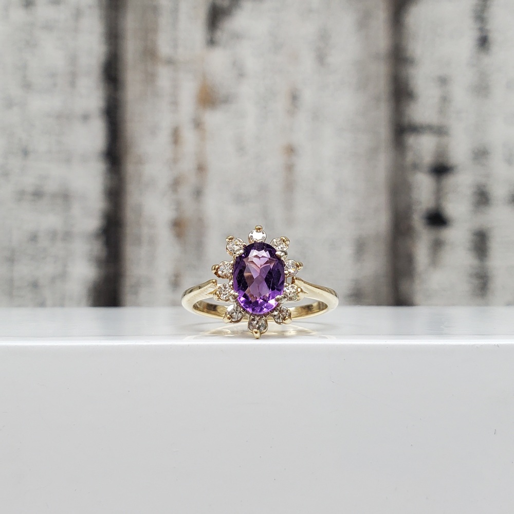 Carat Total Weight: Oval Amethyst + est. .15ctw Single Cut Diamonds