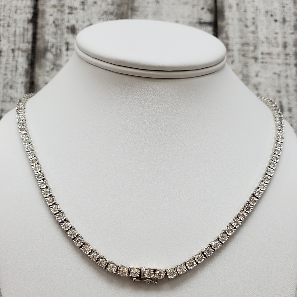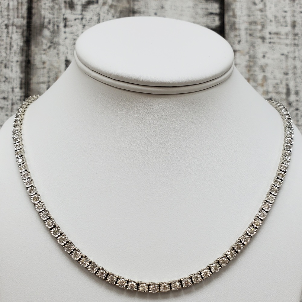 We have this stunning 10K Diamond Illusion Set Tennis Necklace for sale!