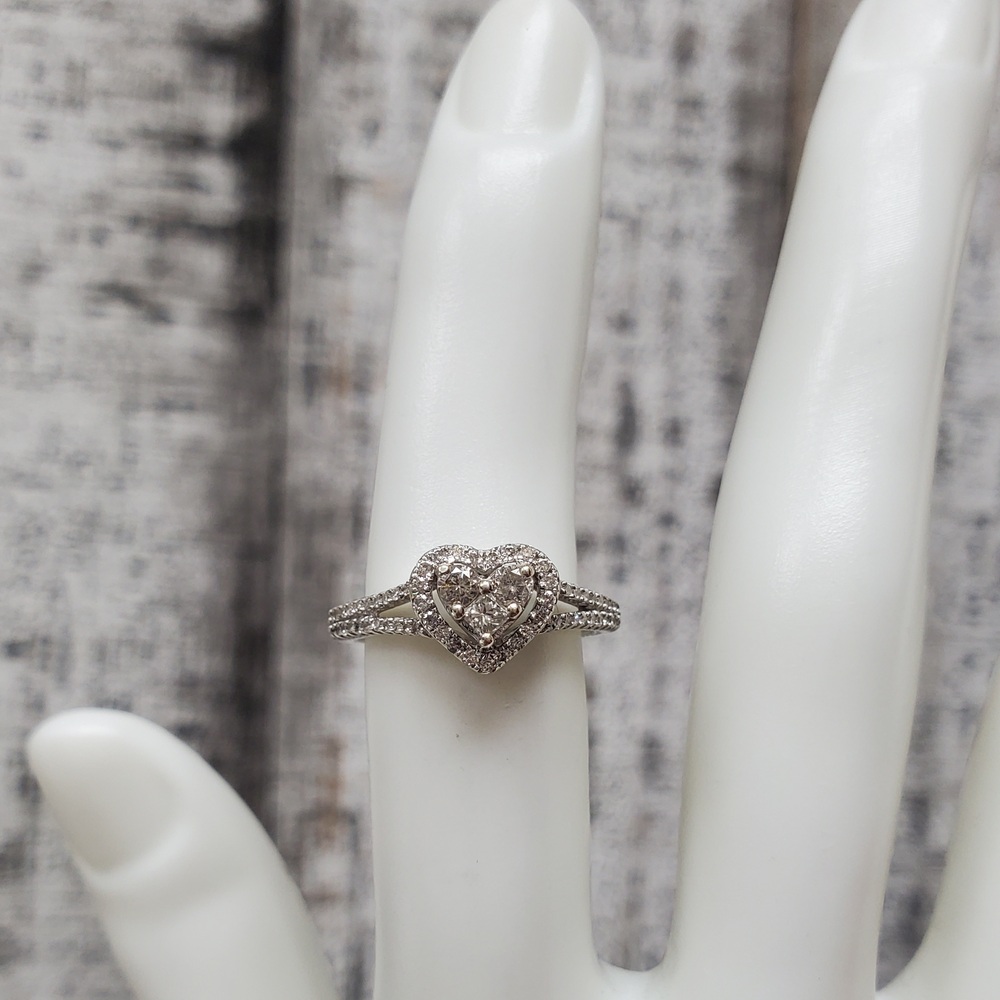 We have this stunning 10K Diamond Ring w/ Heart Shaped Halo for sale!