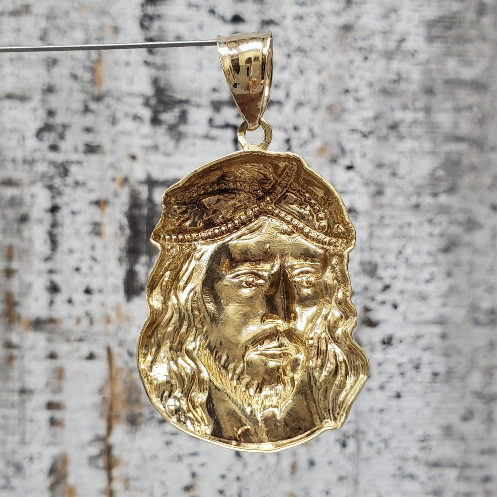 We have this stunning 10K Jesus Face Religious Pendant For sale!