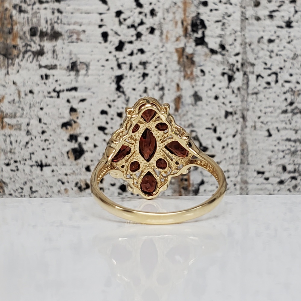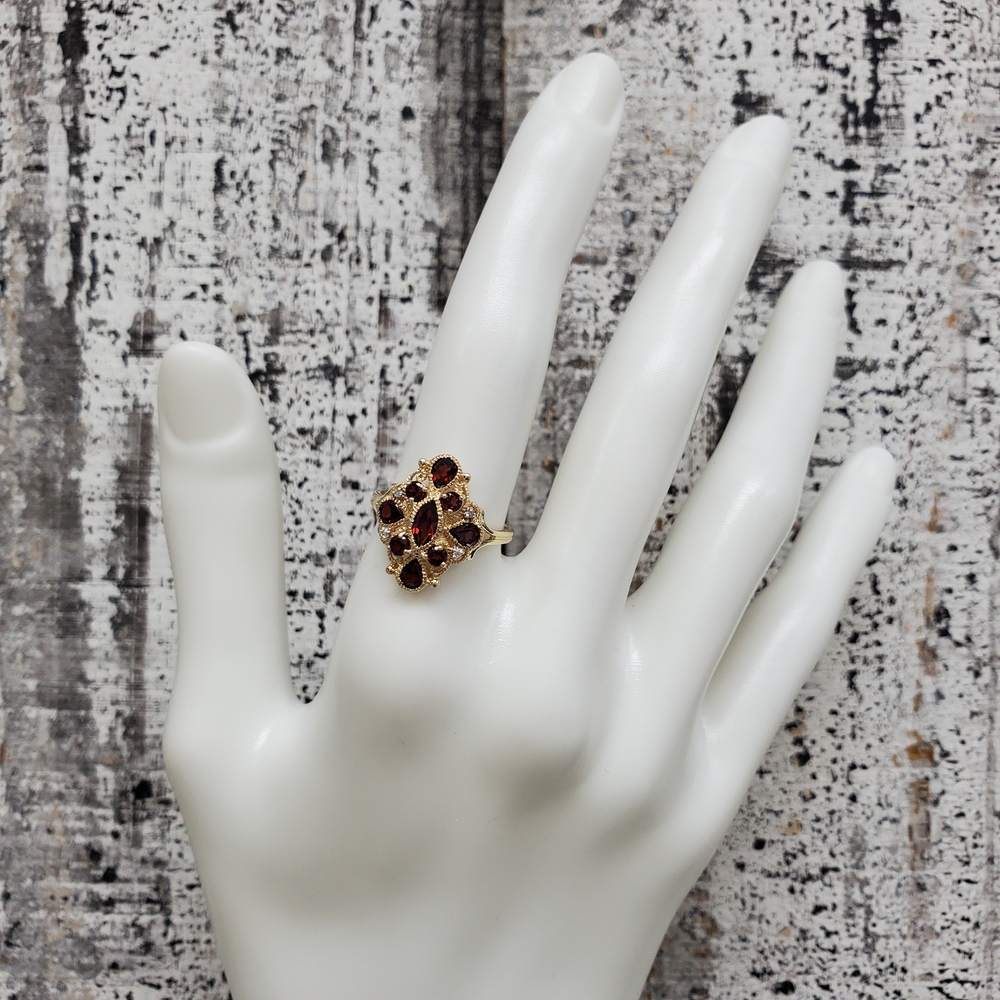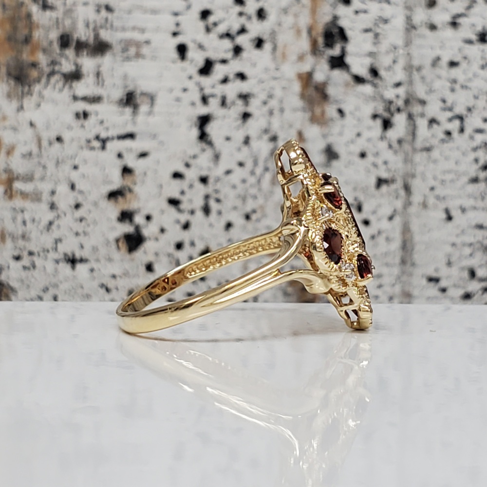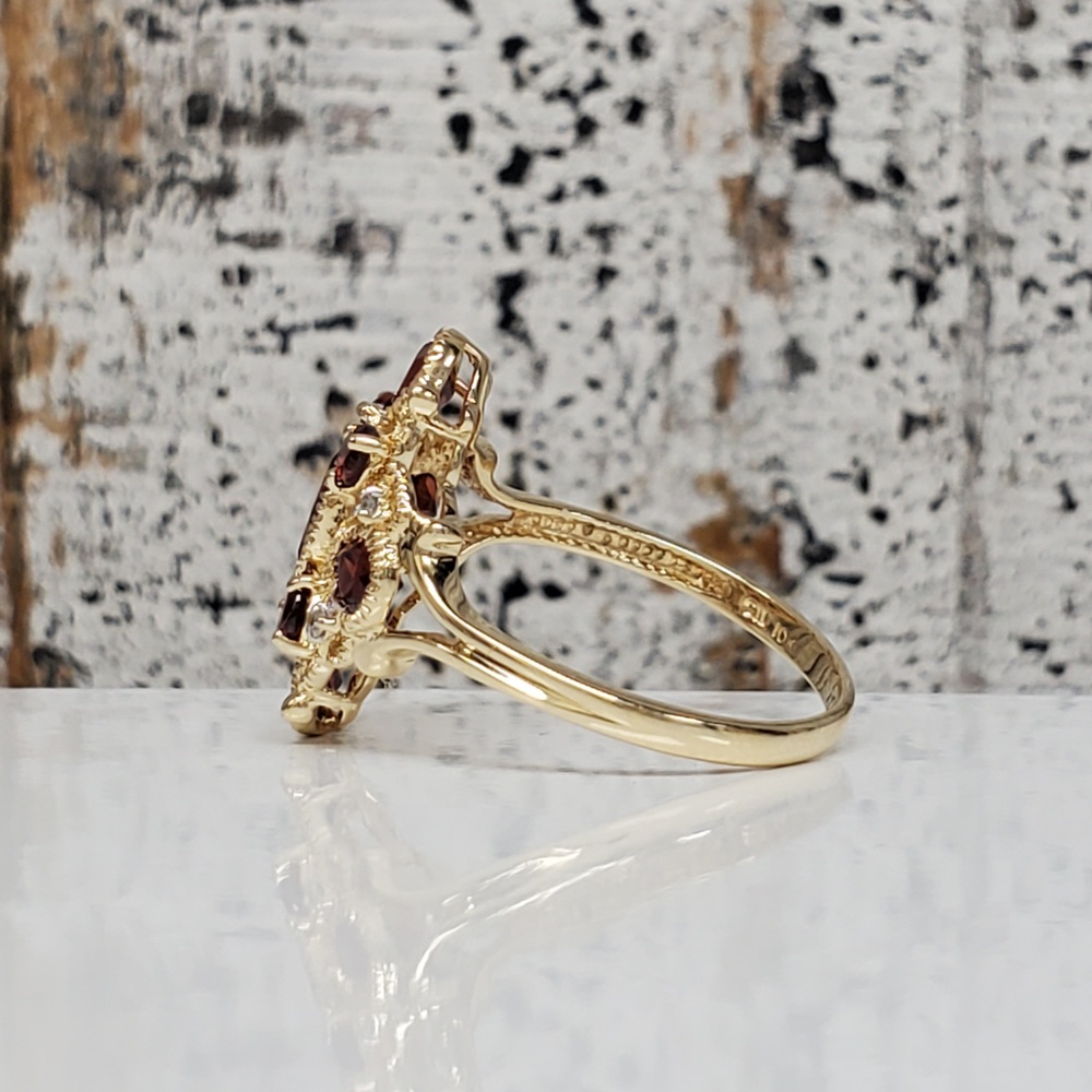 We have this stunning 10K Multi Shaped Garnets Diamond Ring For sale!