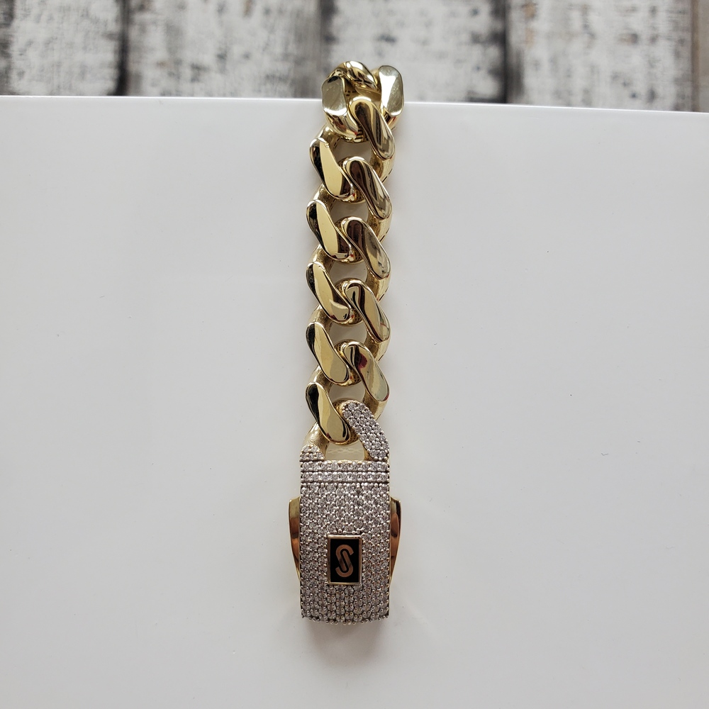 We have this stunning 10K Semi Solid Cuban Link w/ CZ Clasp Bracelet For sale!