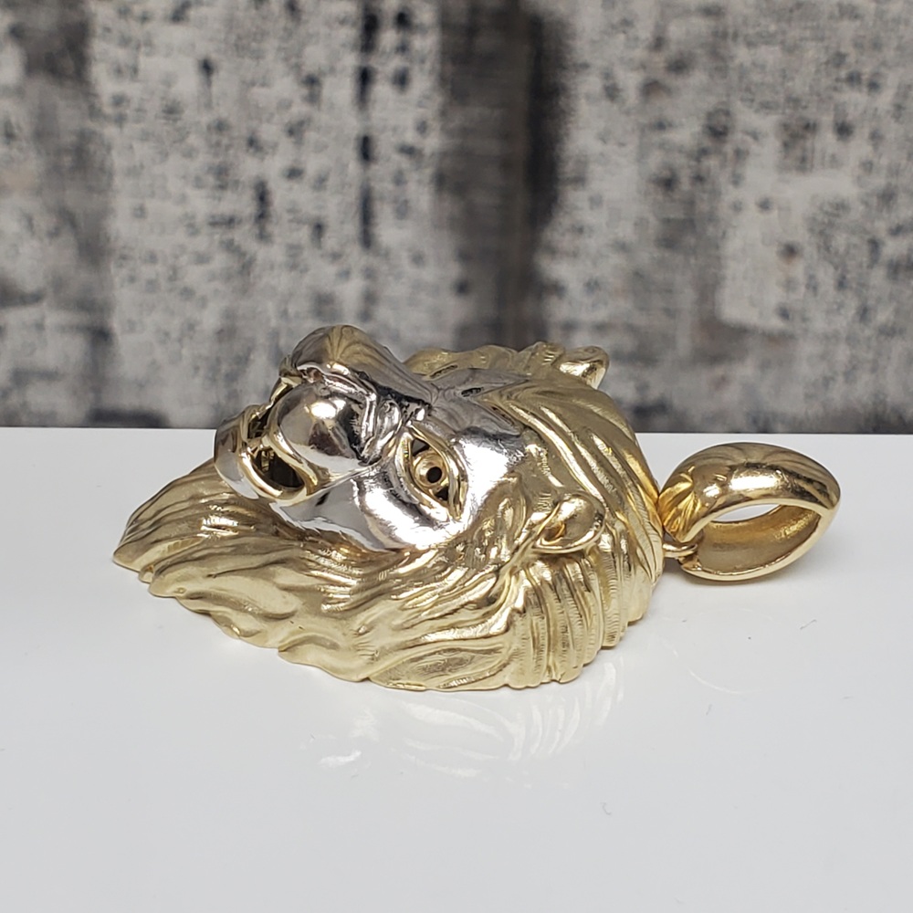 We have this stunning 10K Semi Solid Lion Face Pendant For sale!