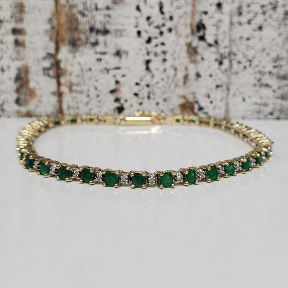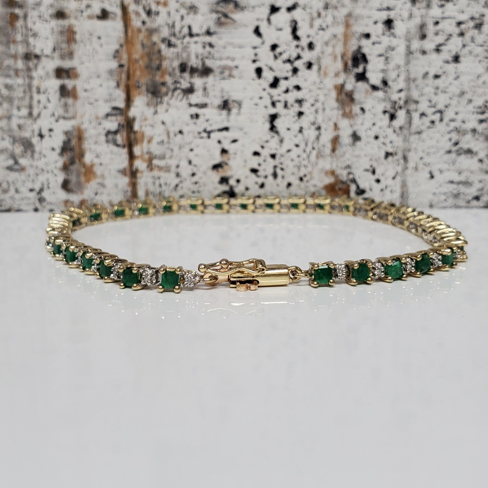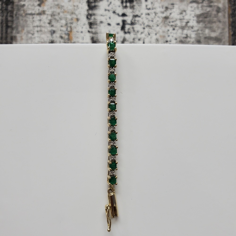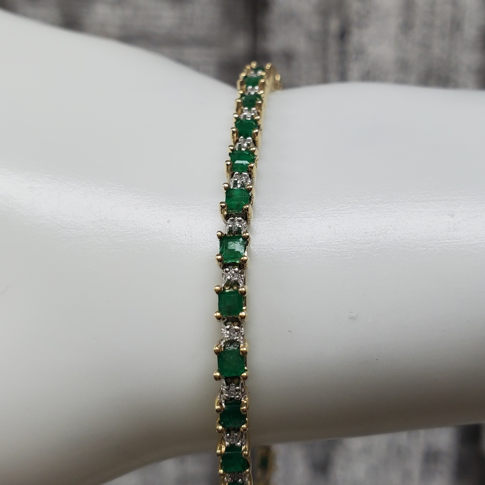 We have this stunning 10K Square Emerald Diamond Bracelet For sale!