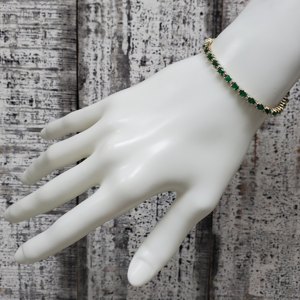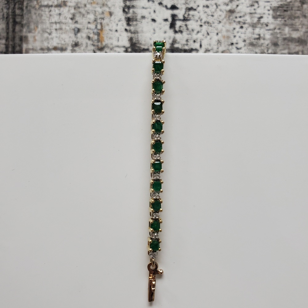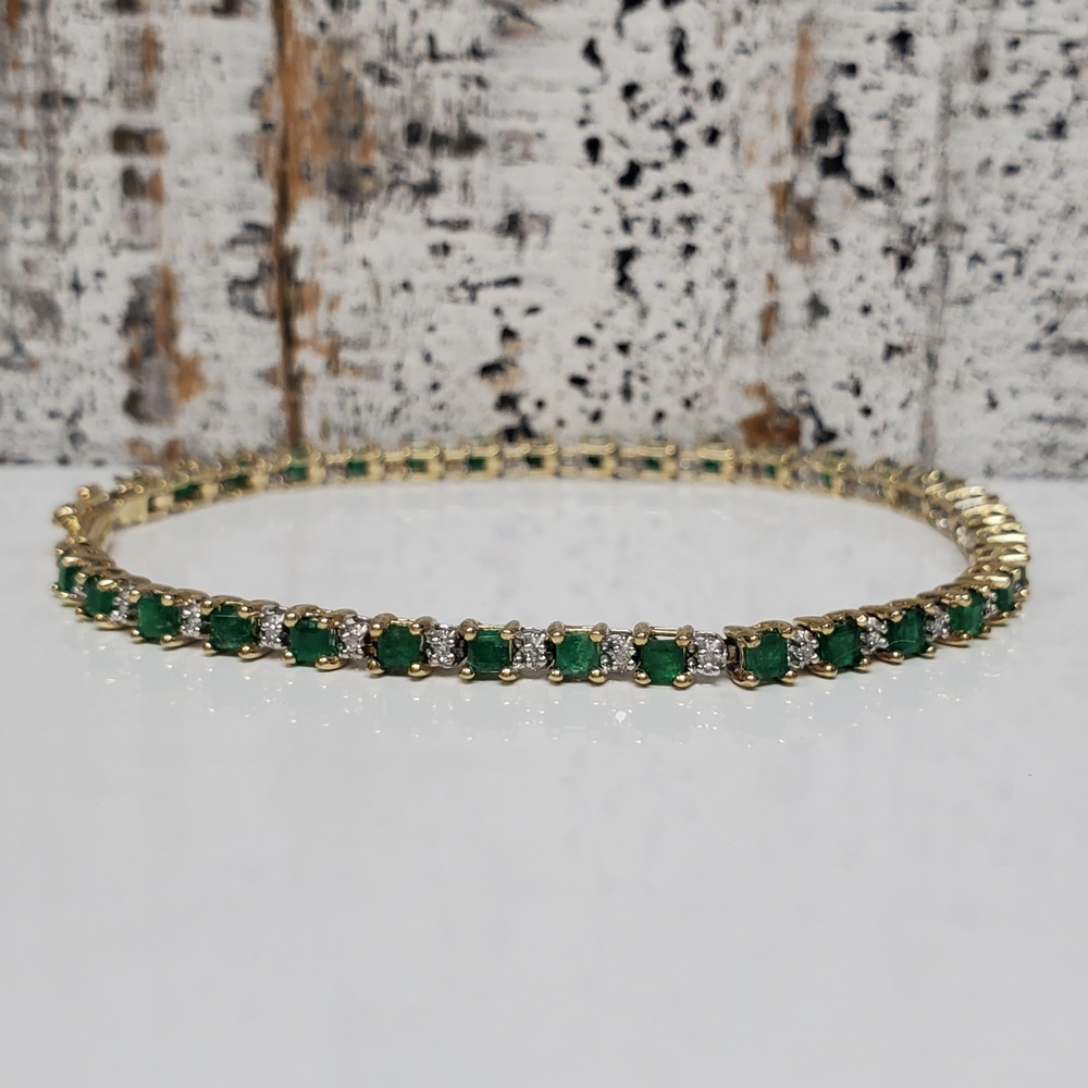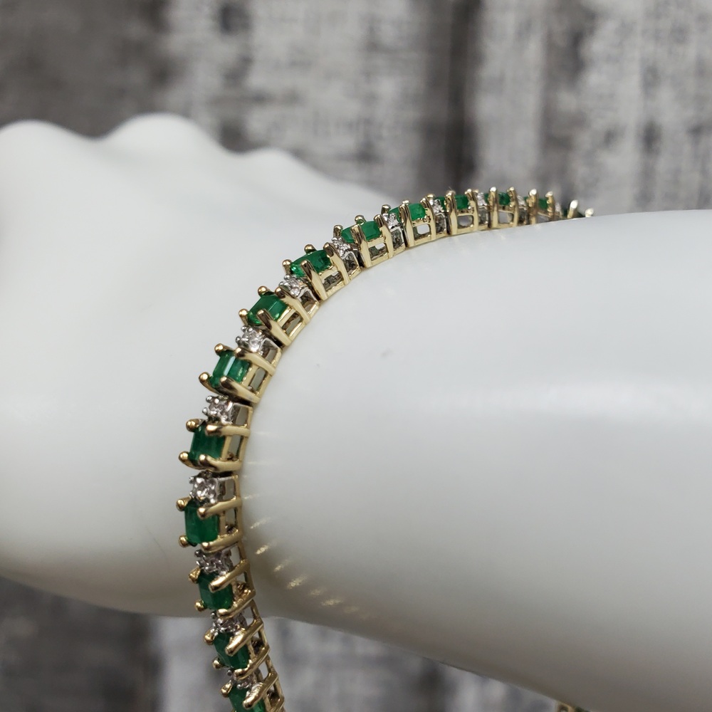 We have this stunning 10K Square Emerald Diamond Bracelet For sale!
