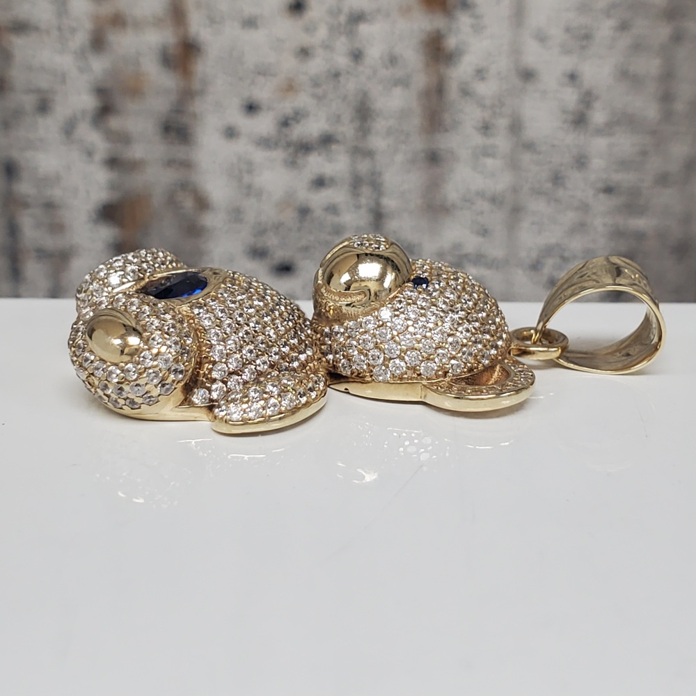 We have this stunning 10K Teddy Bear CZ + Blue Stone Ring For sale!