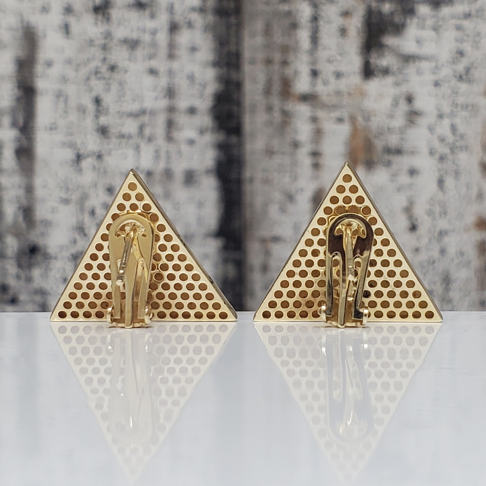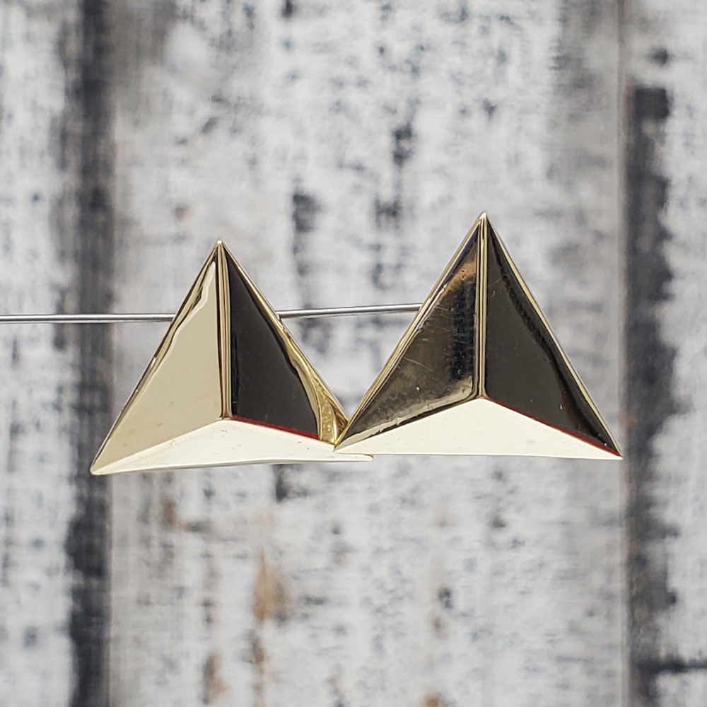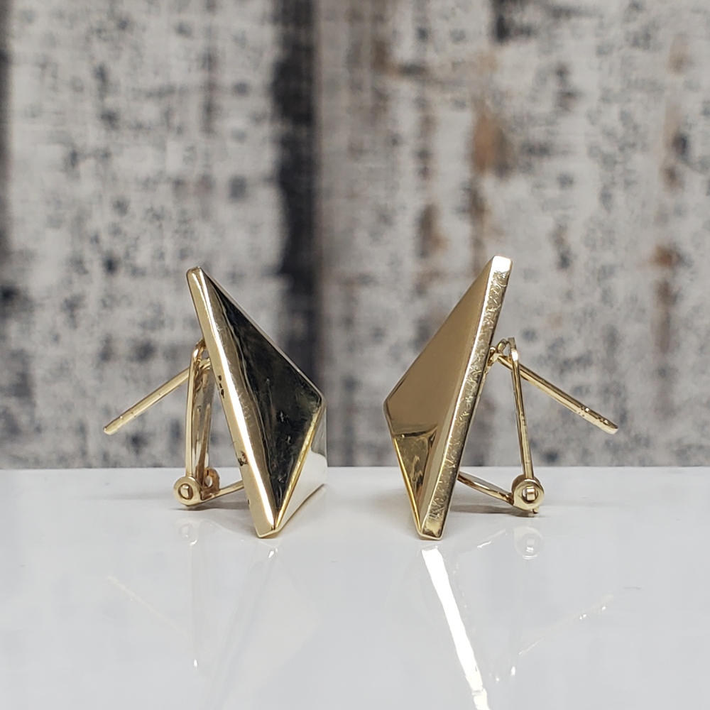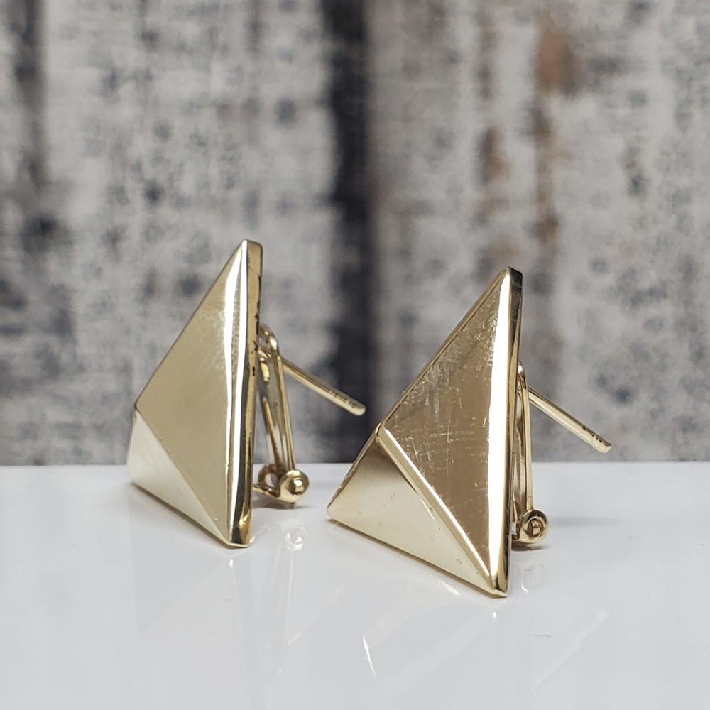We have this stunning 10K Triangular Shaped Earrings w/ Omega Clasp Backs For sale!