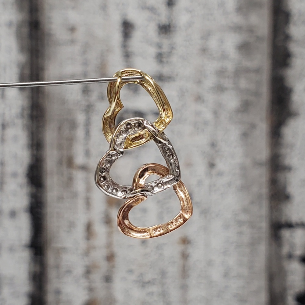We have this stunning 10K TriColor 3- Hearts Diamond Pendant For sale!