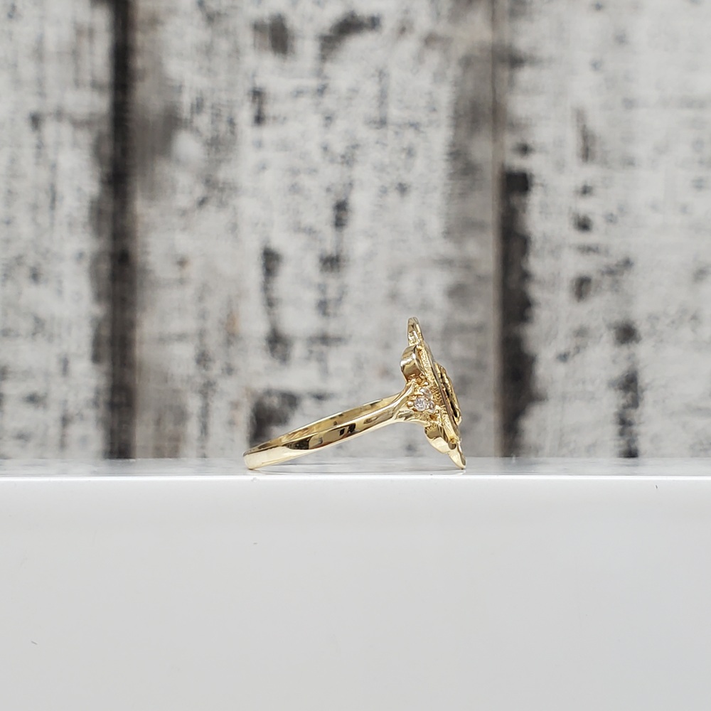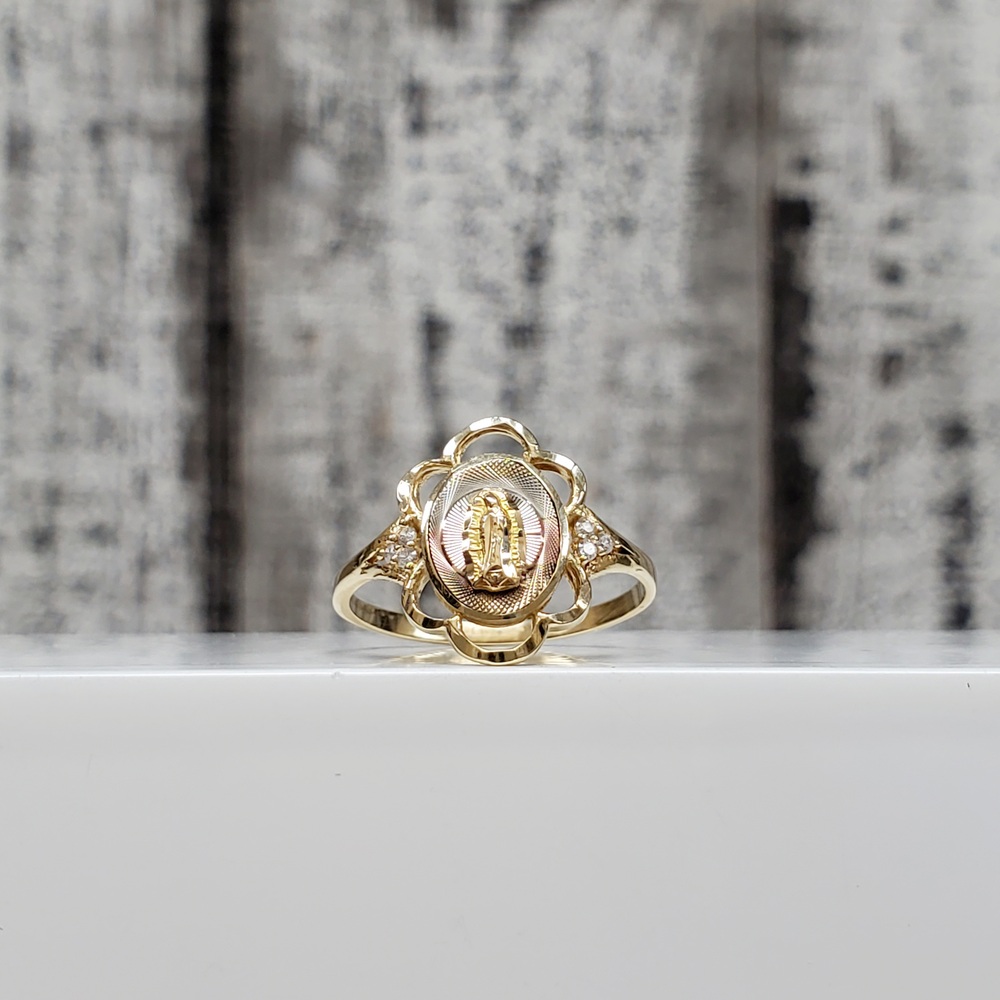 We have this stunning 10K TriColor CZ Virgin Mary / Guadalupe Religious Ring for sale!