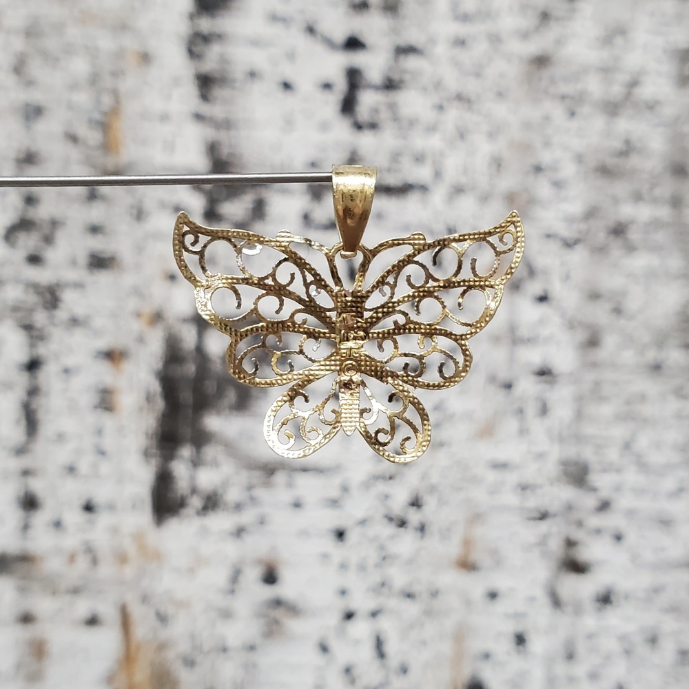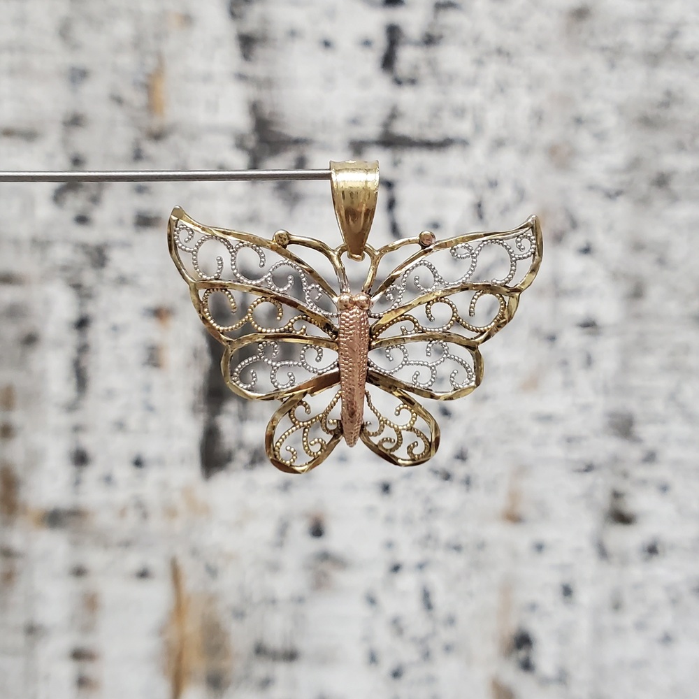 We have this stunning 10K Tricolor Fancy Butterfly Pendant For sale!
