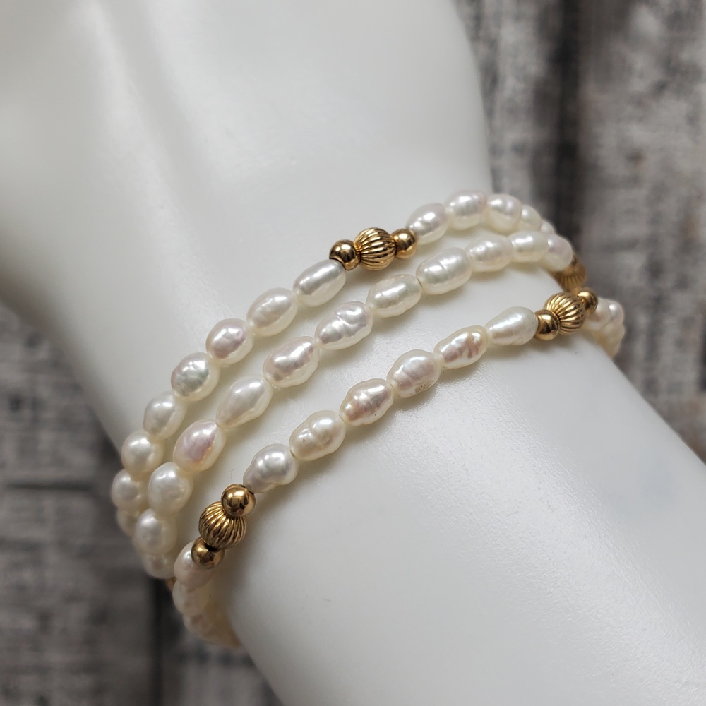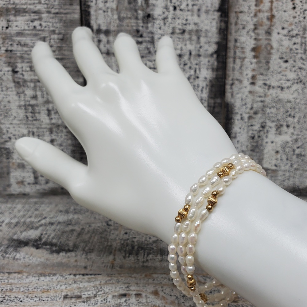 We have this stunning 14K 3-Strand Seed Pearl Bracelet For sale!