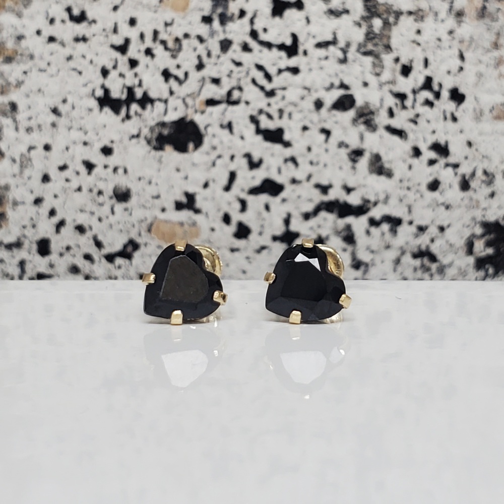We have this stunning 14K Black Stone Heart Shaped Stud Earrings w/ Baby Screwbacks For sale!