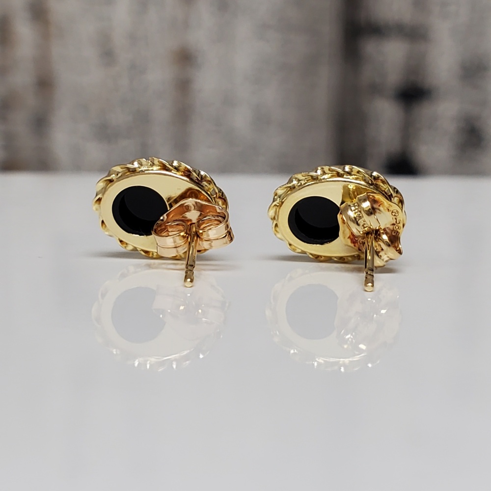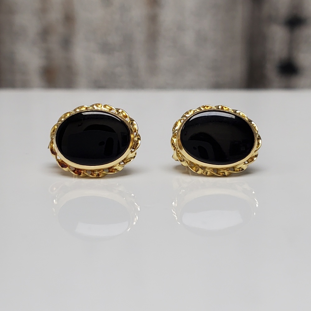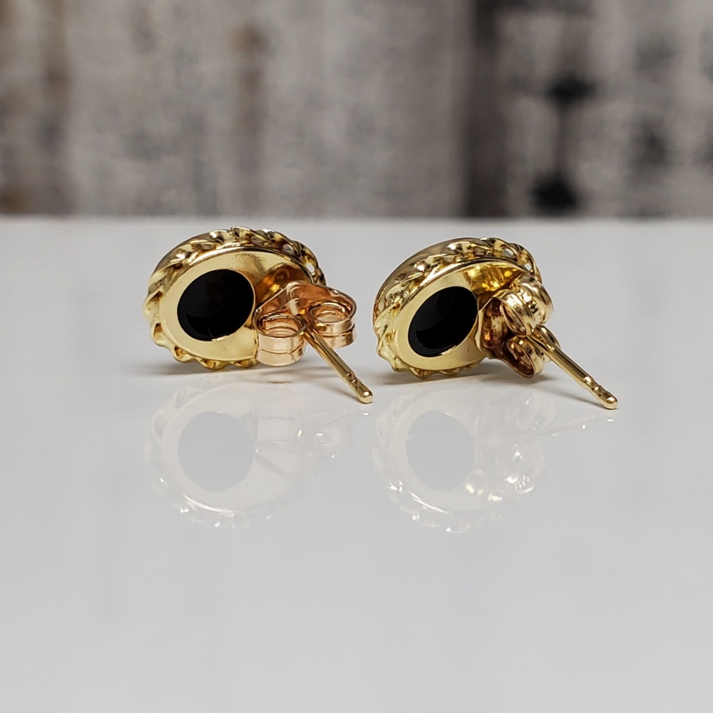 We have this stunning 14K Black Stone Stud Earrings w/ Friction Backs For sale!