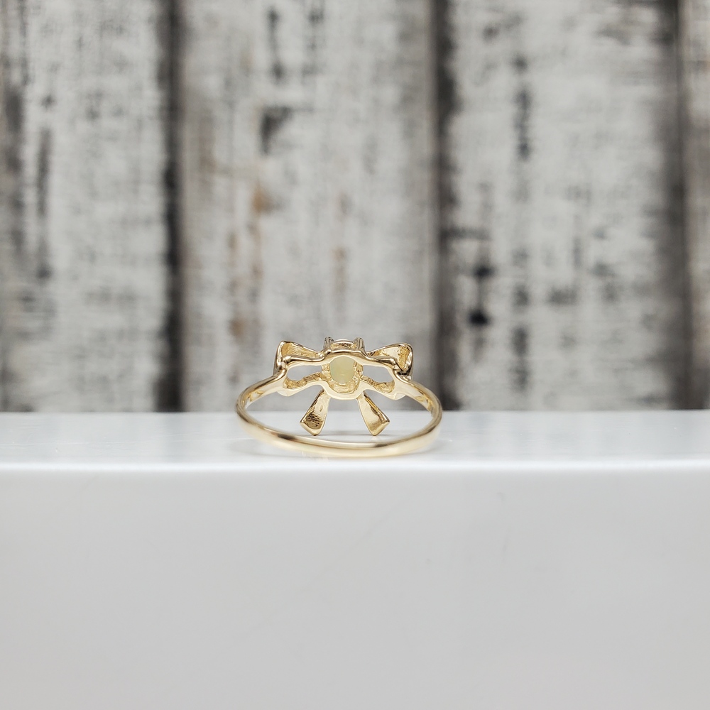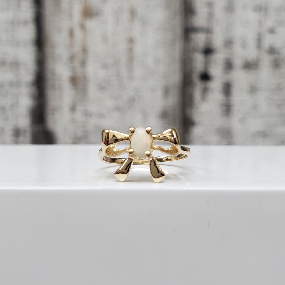 We have this stunning 14K Bow Design w/ Oval 1 Opal Ring For sale!
