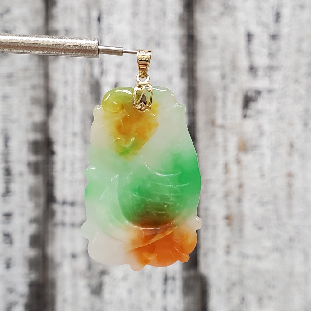 We have this stunning 14K Carved Jade Fish Pendant for sale!