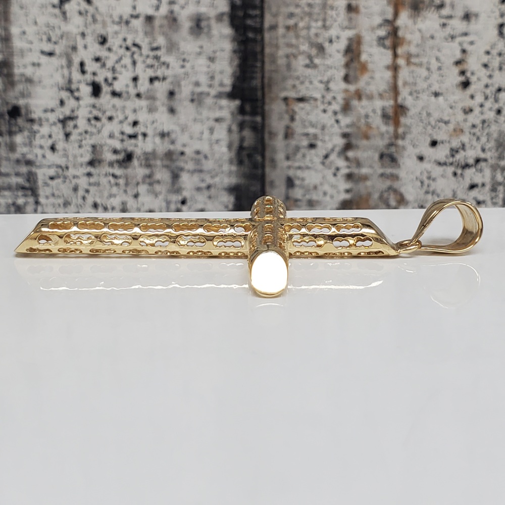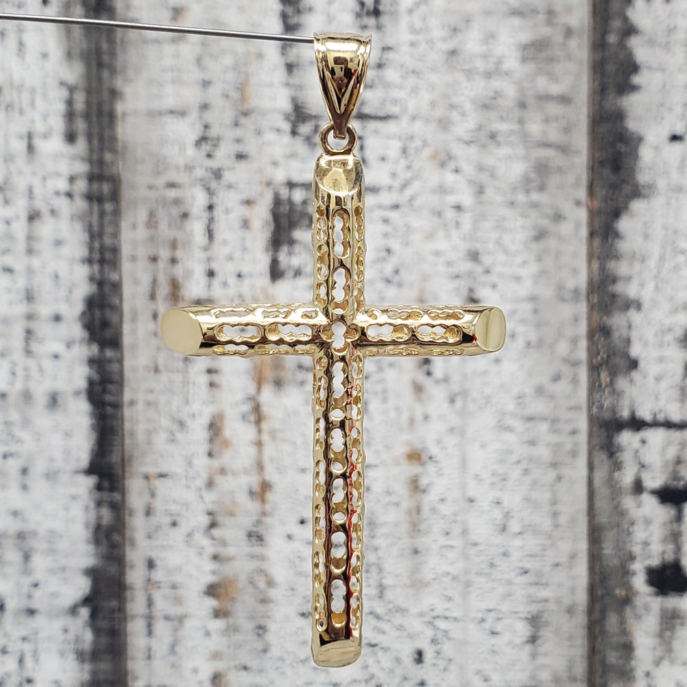 We have this stunning 14K Cross Pendant With Cut Out Design Religious Pendant For sale!