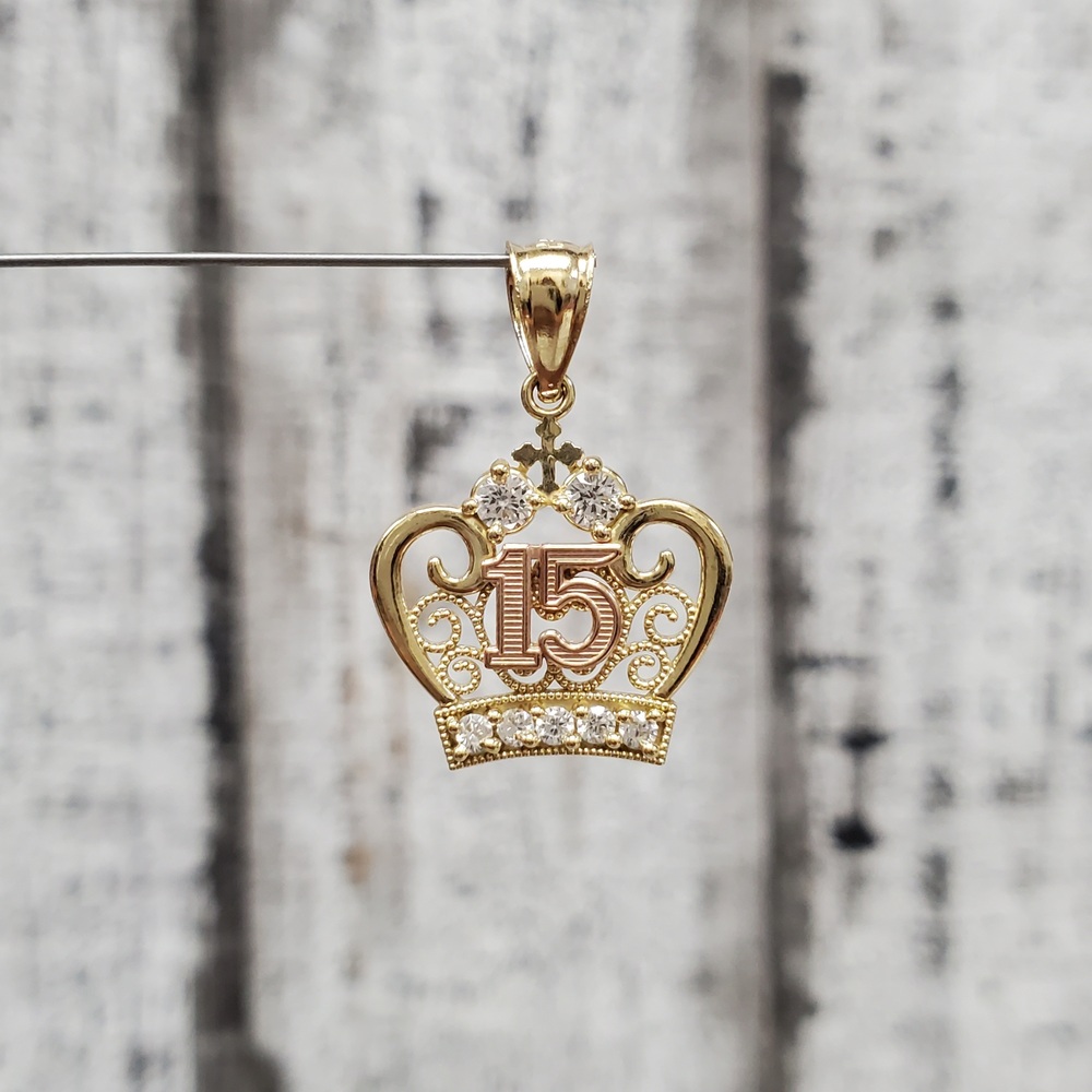 We have this stunning 14K Crown ?" 15 Anos CZ Pendant for sale!
