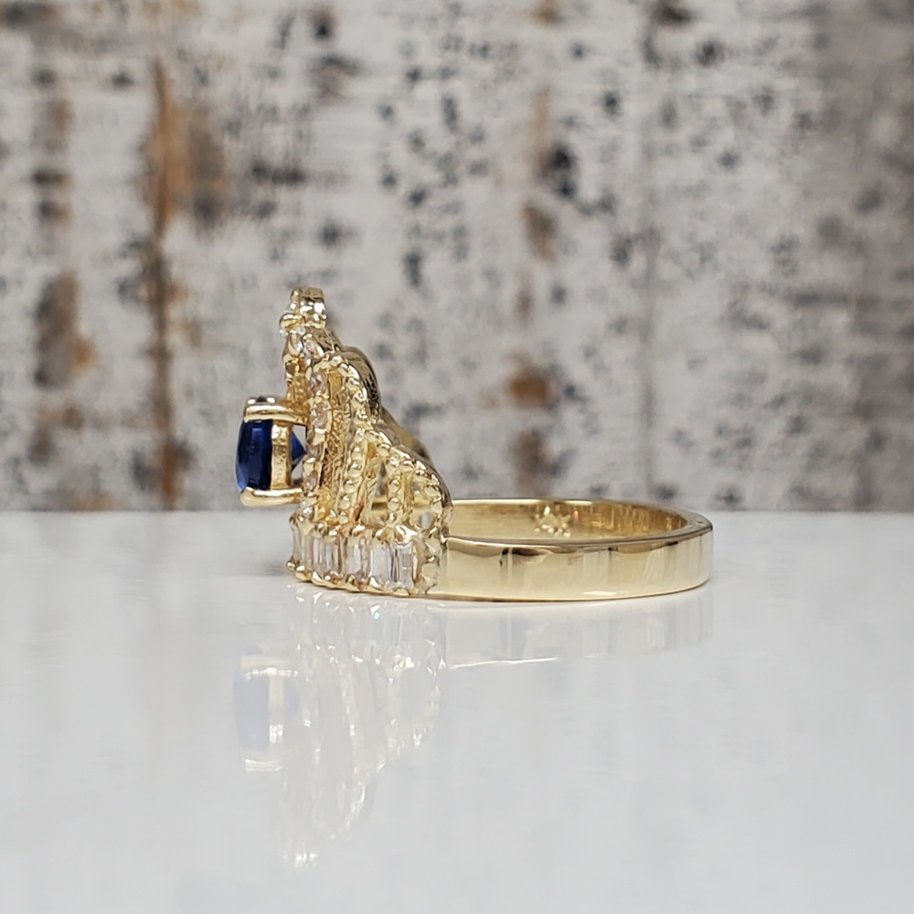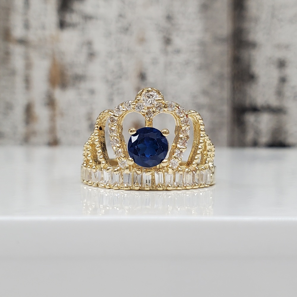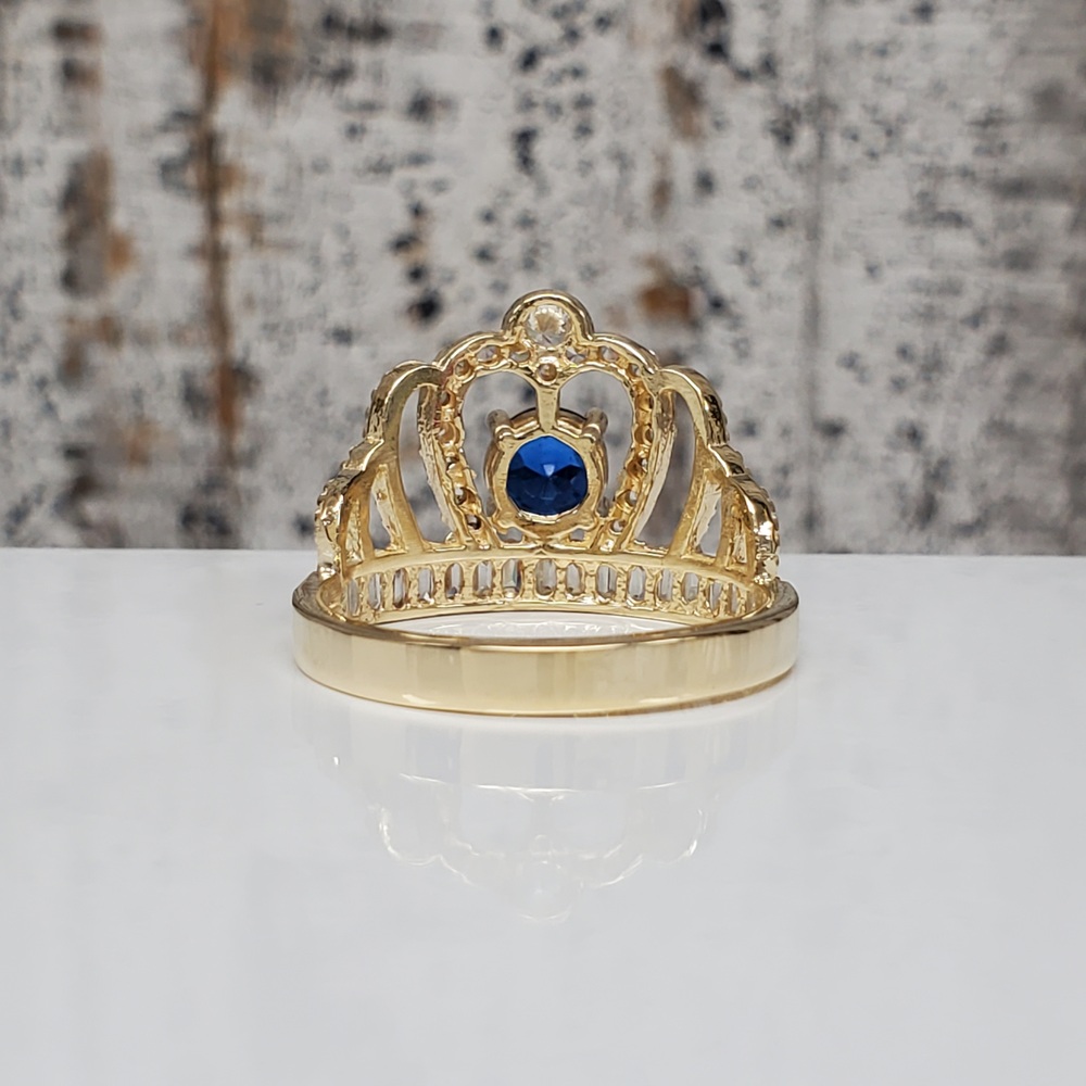 We have this stunning 14K Crown Ring w/ White and Blue CZ For sale!