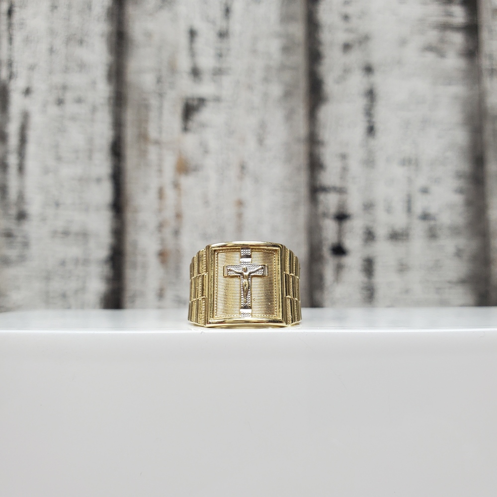 We have this stunning 14K Crucifix Cross Jesus Religious Ring for sale!