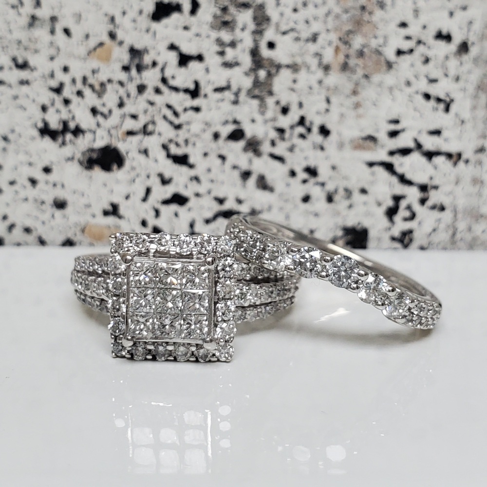 Carat Total Weight: Est. 1ctw Round Brilliant Diamonds + Princess Cut Diamonds + est. .35ctw Round Brilliant Diamonds