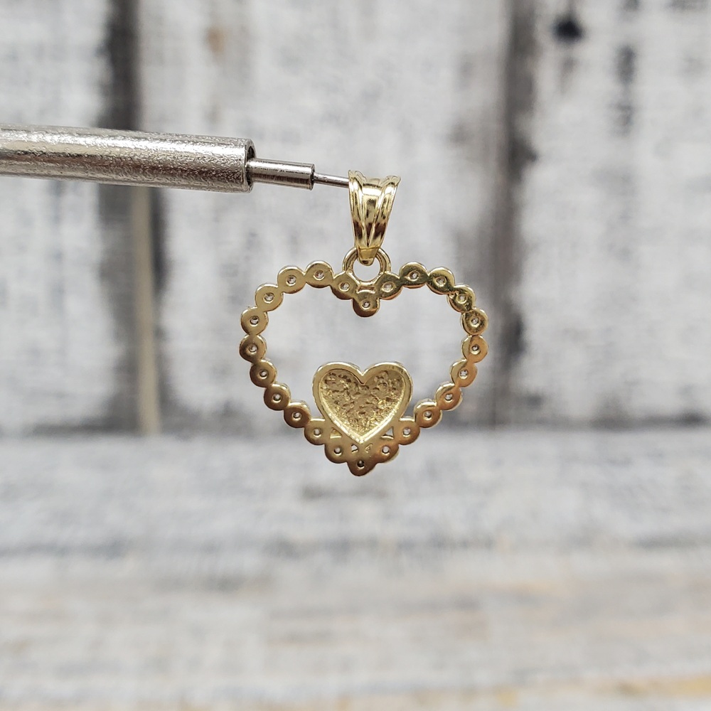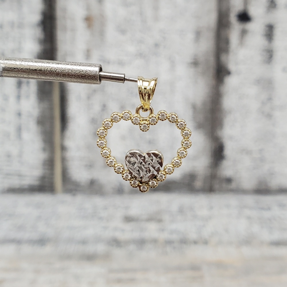 We have this stunning 14K CZ Double Heart Pendant for sale!