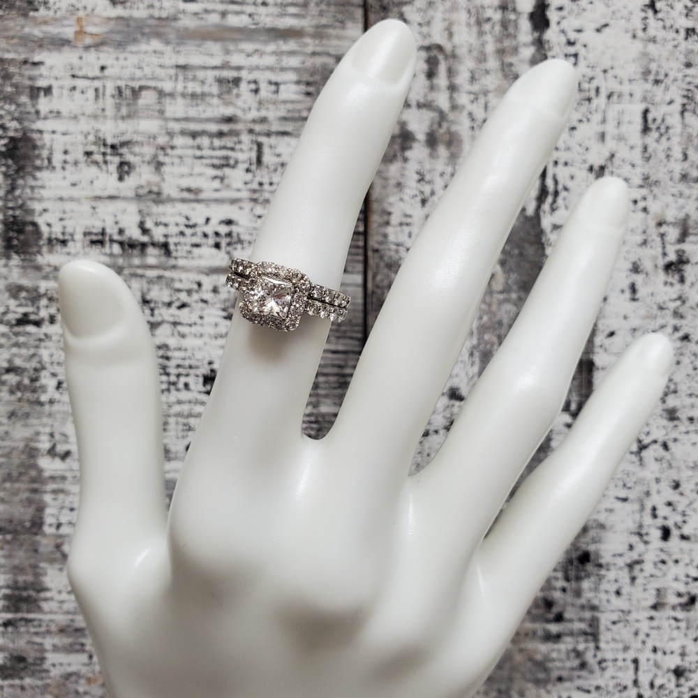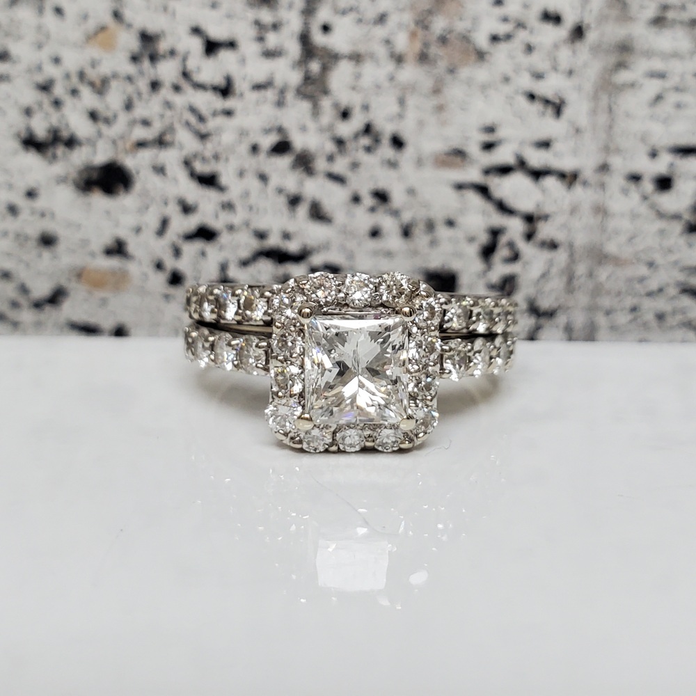 Carat Total Weight: Est. 1ctr Princess Cut Diamond - Clar Enh. + est. .65ctw RB Dias + est. .40ctw RB