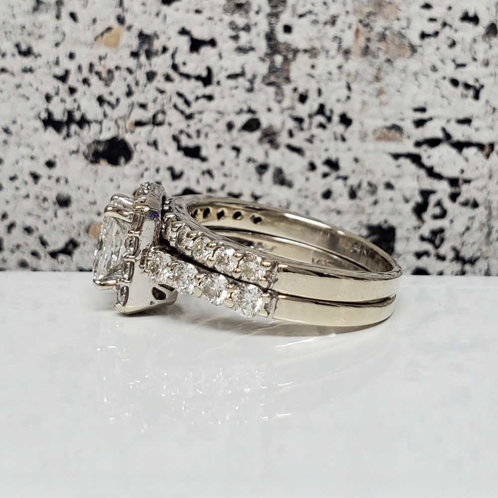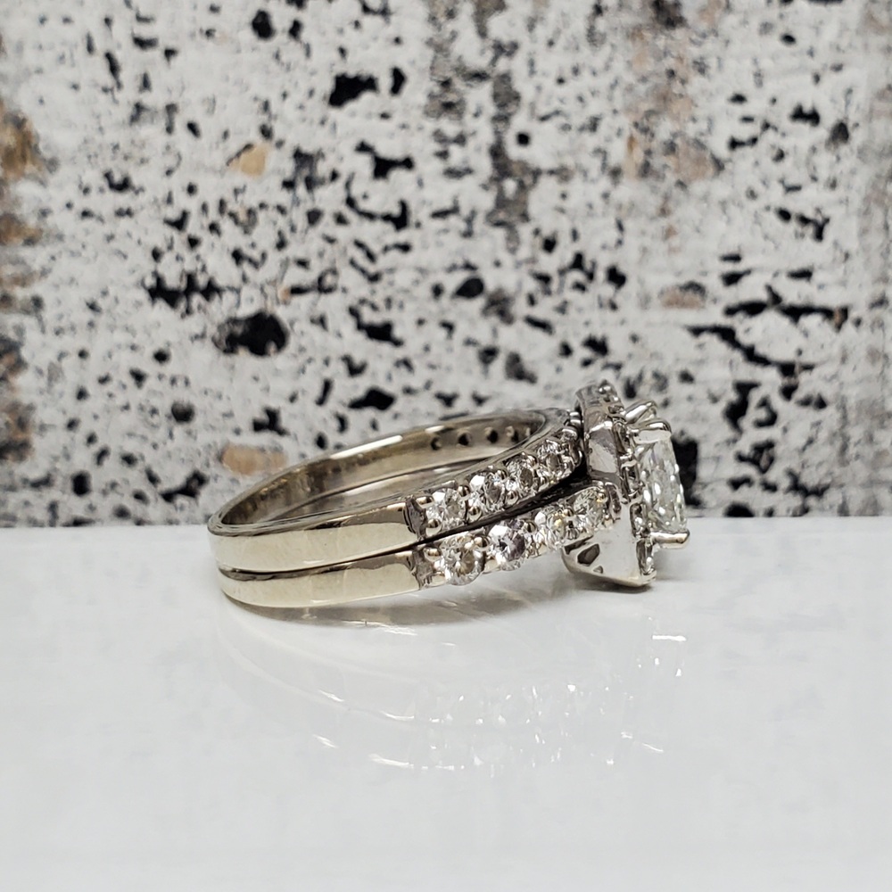 We have this stunning 14K Diamond Band Soldered Together Wedding Set For sale!