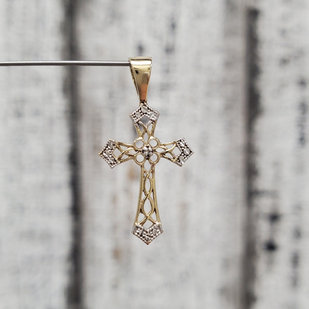 We have this stunning 14K Diamond Cross Religious Pendant For sale!