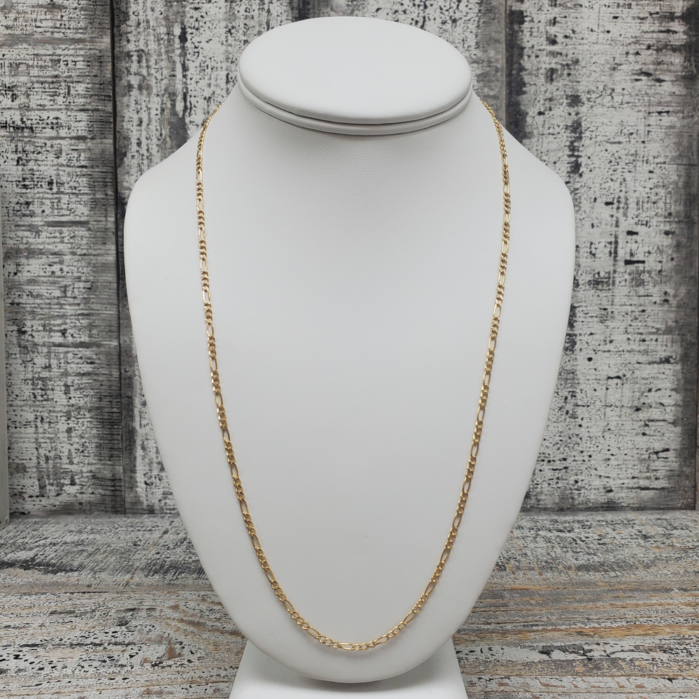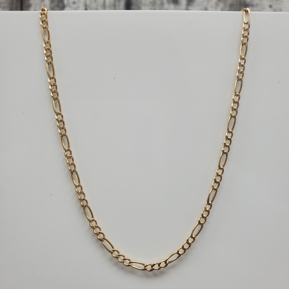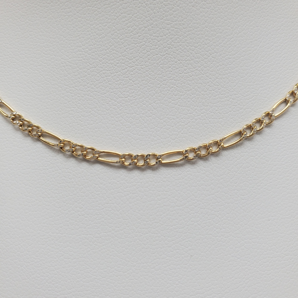 We have this stunning 14K Diamond Cut Semi Solid Figaro Link Necklace For sale!