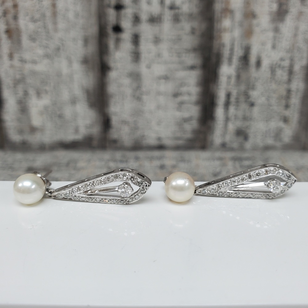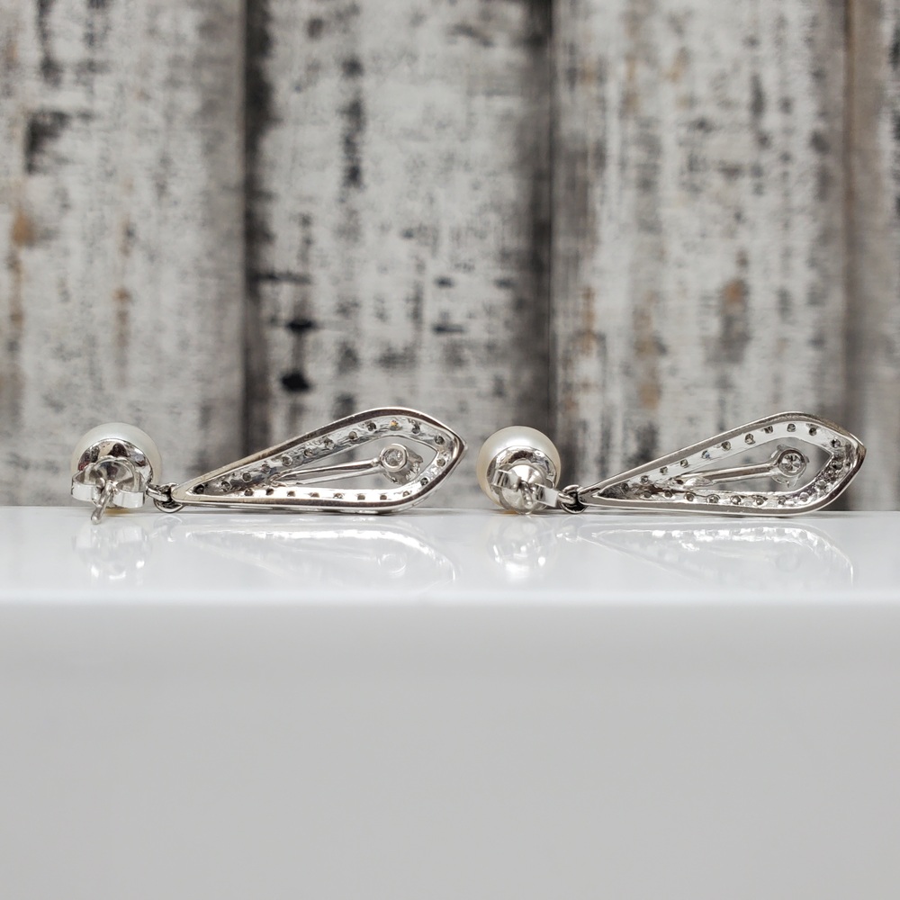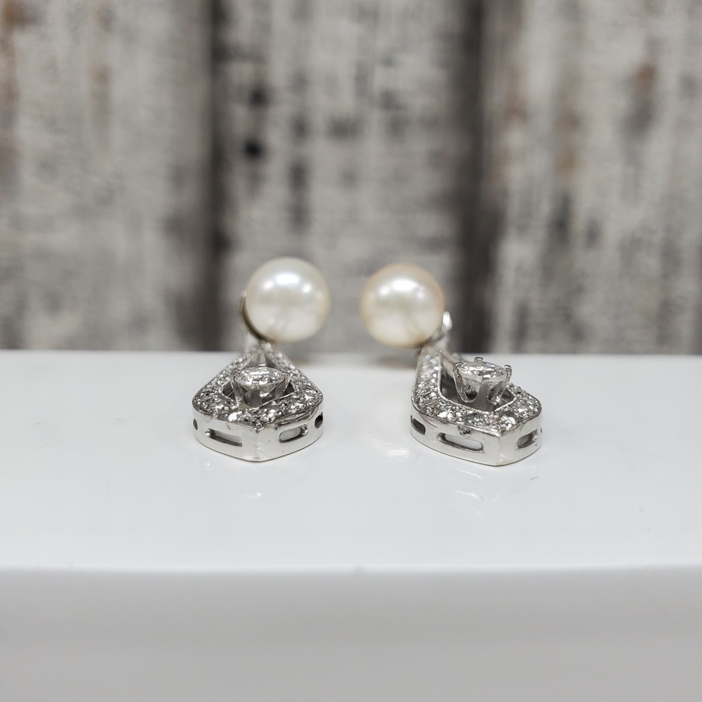 Carat Total Weight: Aprox 8.2mm Pearls w/ est. 1.15ctw Round Brilliant Diamonds + Single Cut Diamonds
