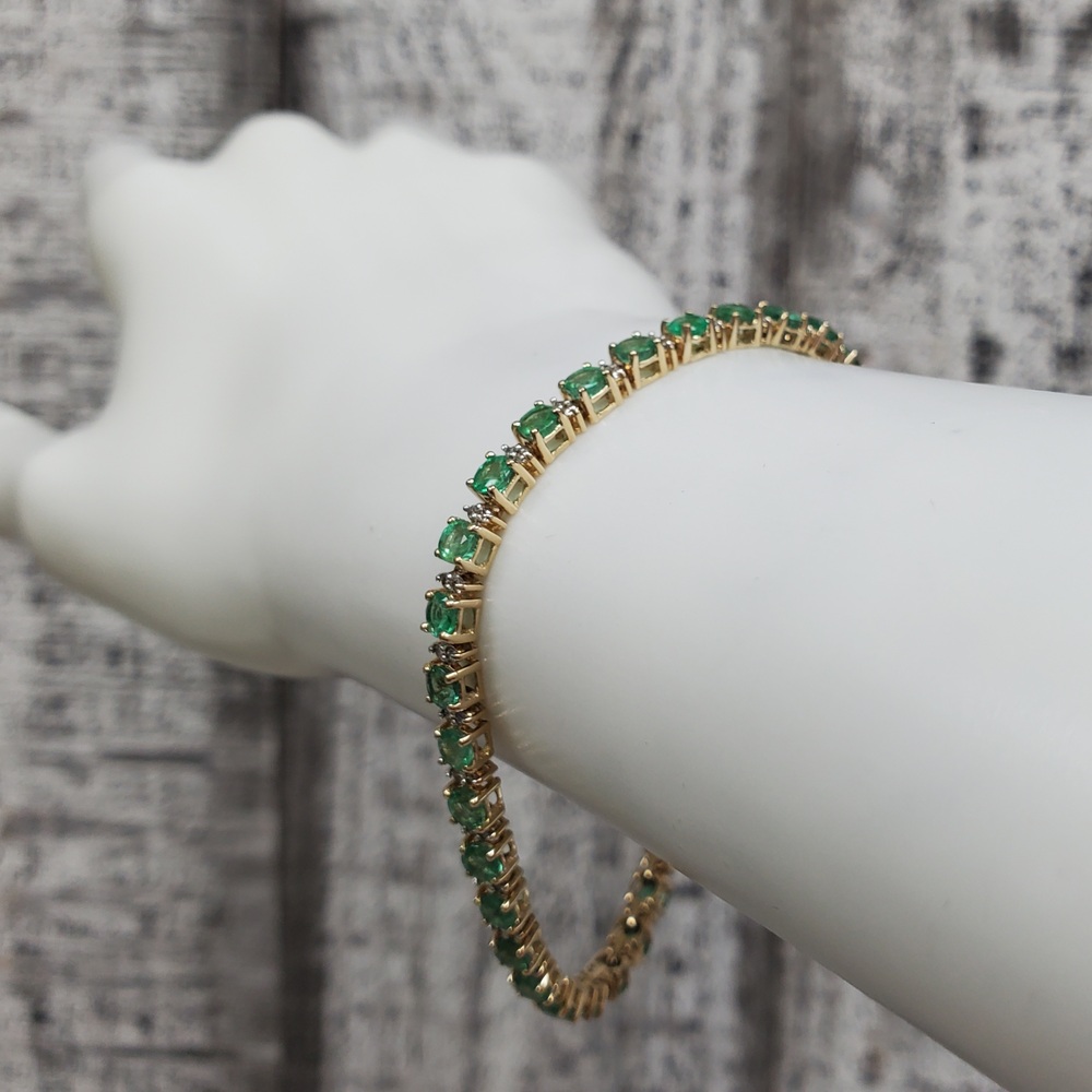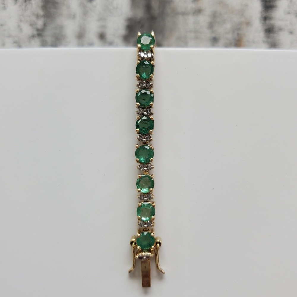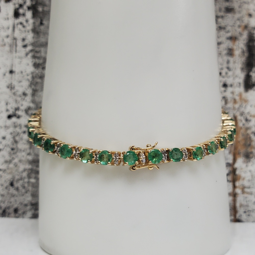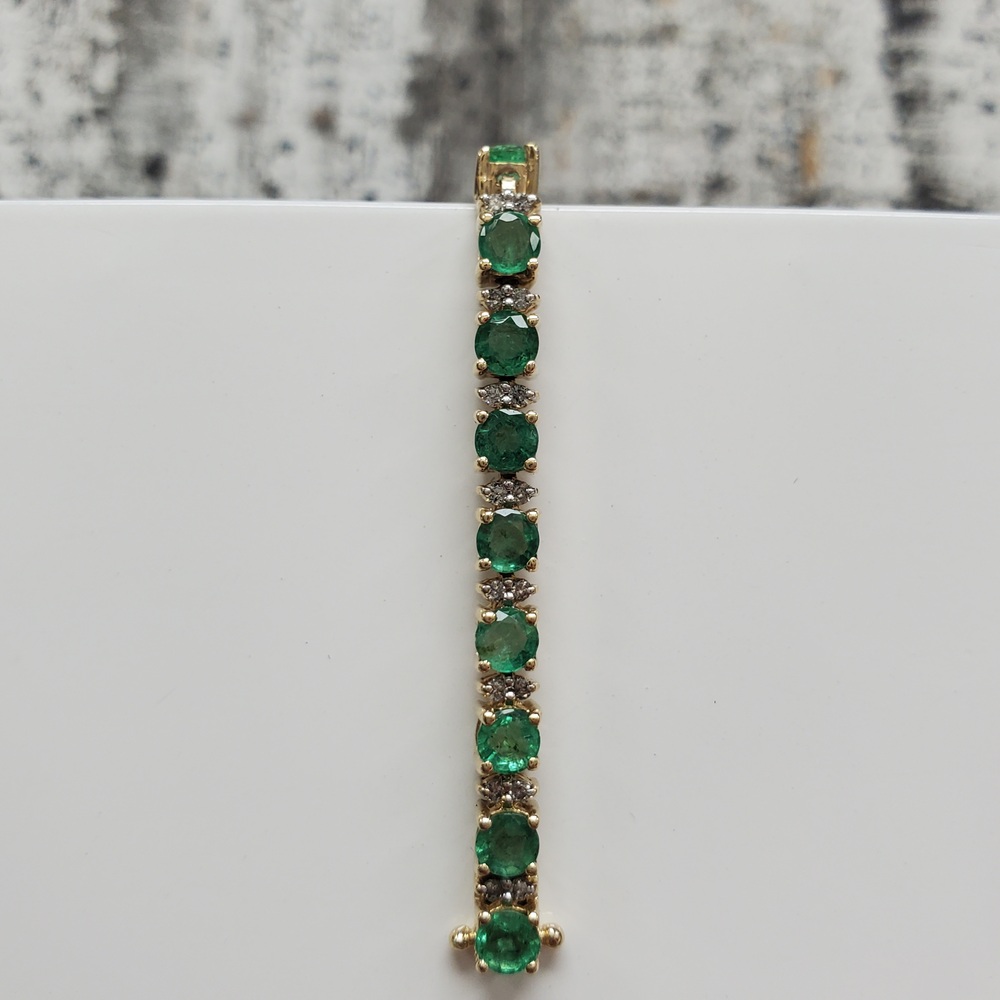 We have this stunning 14K Diamond + Emerald Bracelet For sale!