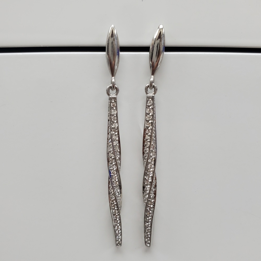We have this stunning 14K Diamond Fancy Twisty Dangle Earrings w/ Friction Backs For sale!