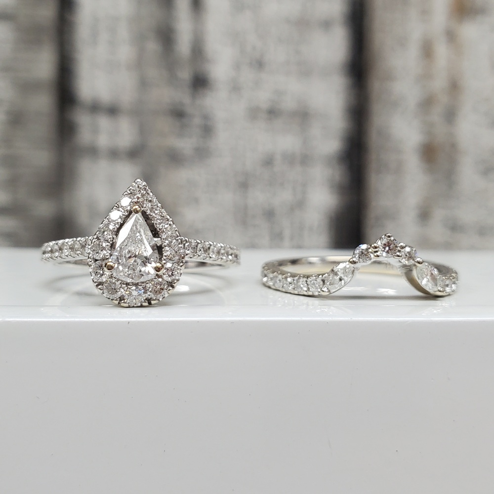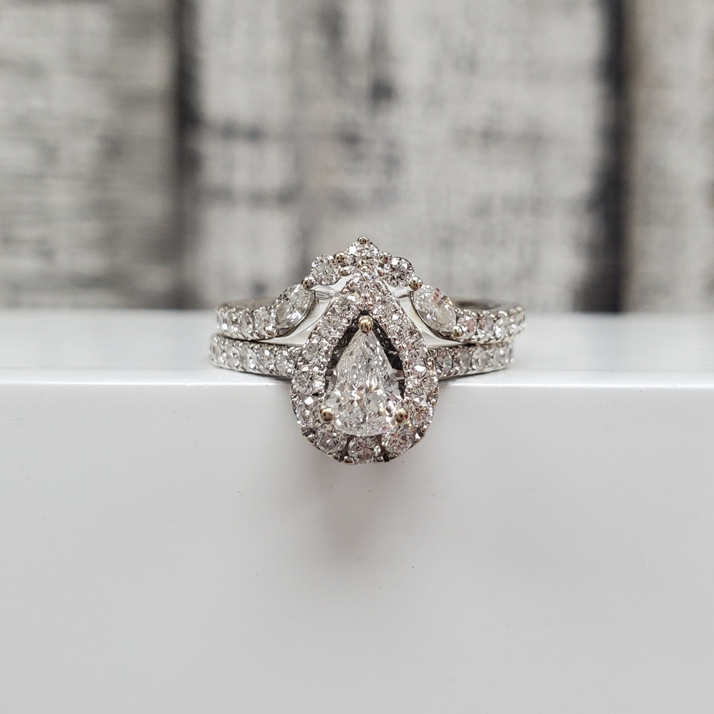We have this stunning 1.49ctw Pear Shaped Diamond Ring And Band Set For Sale!