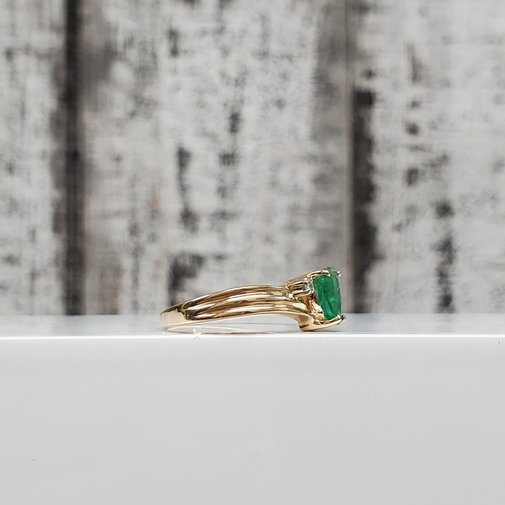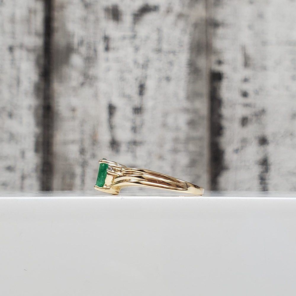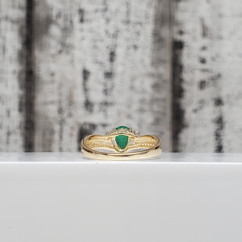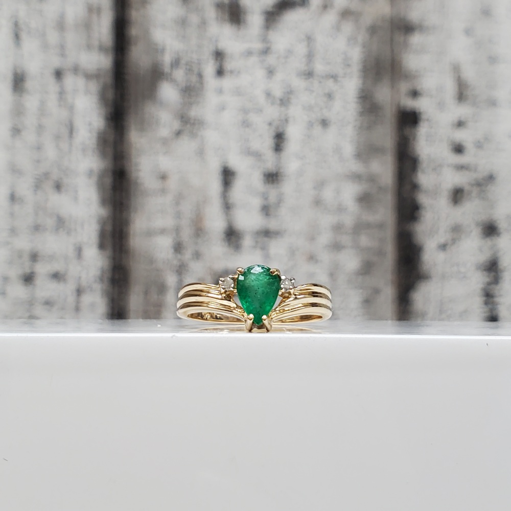 We have this stunning 14K Diamond + Pear Emerald Ring for sale!