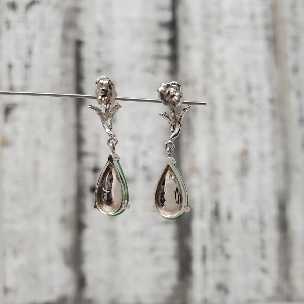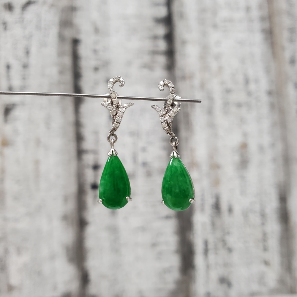 We have this stunning 14K Diamond + Pear Shaped Jade Dangle Earrings for sale!