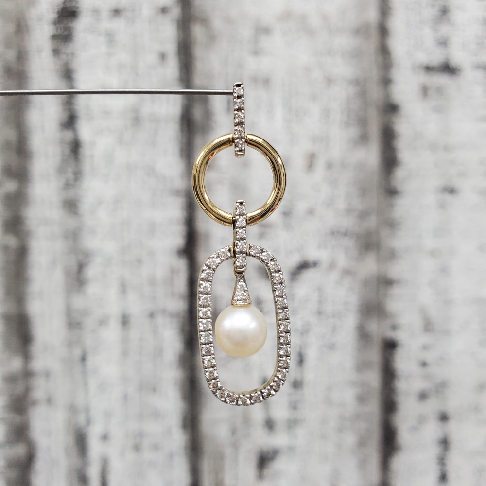 We have this stunning 14K Diamond Pearl Pendant for sale!