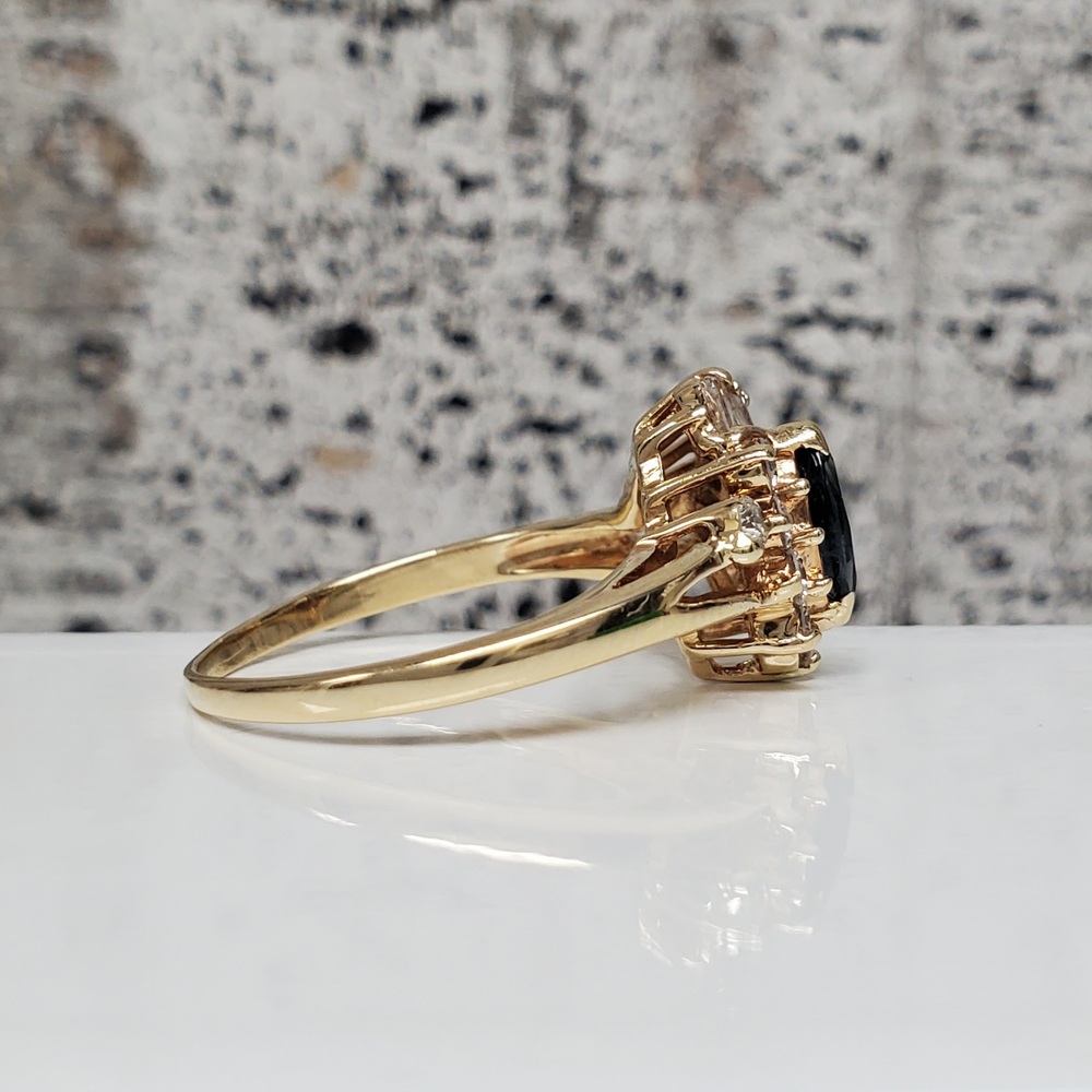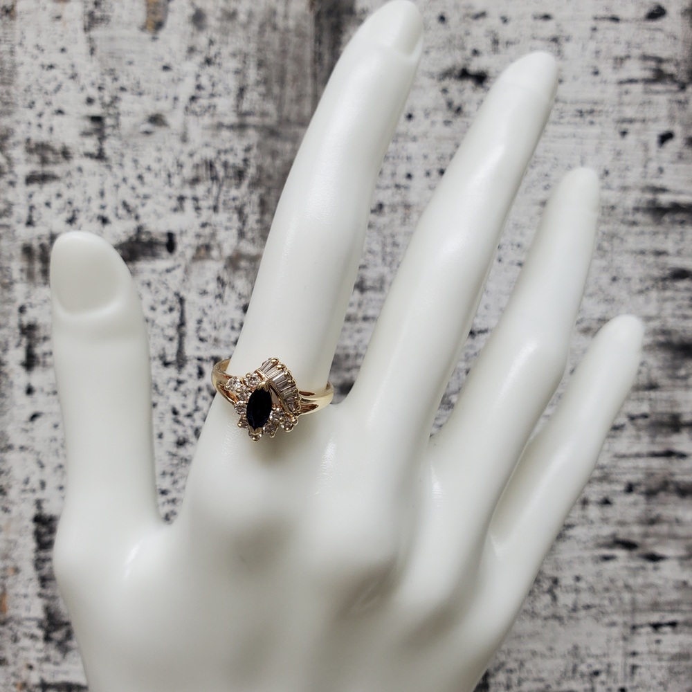 We have this stunning 14K Diamond + Sapphire Ring For sale!