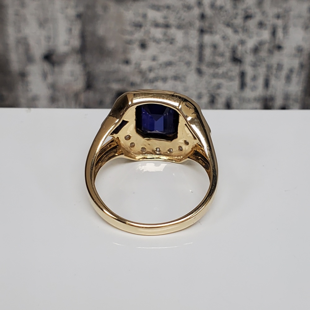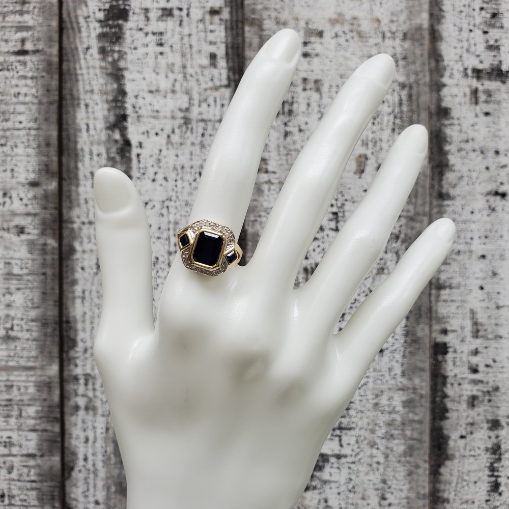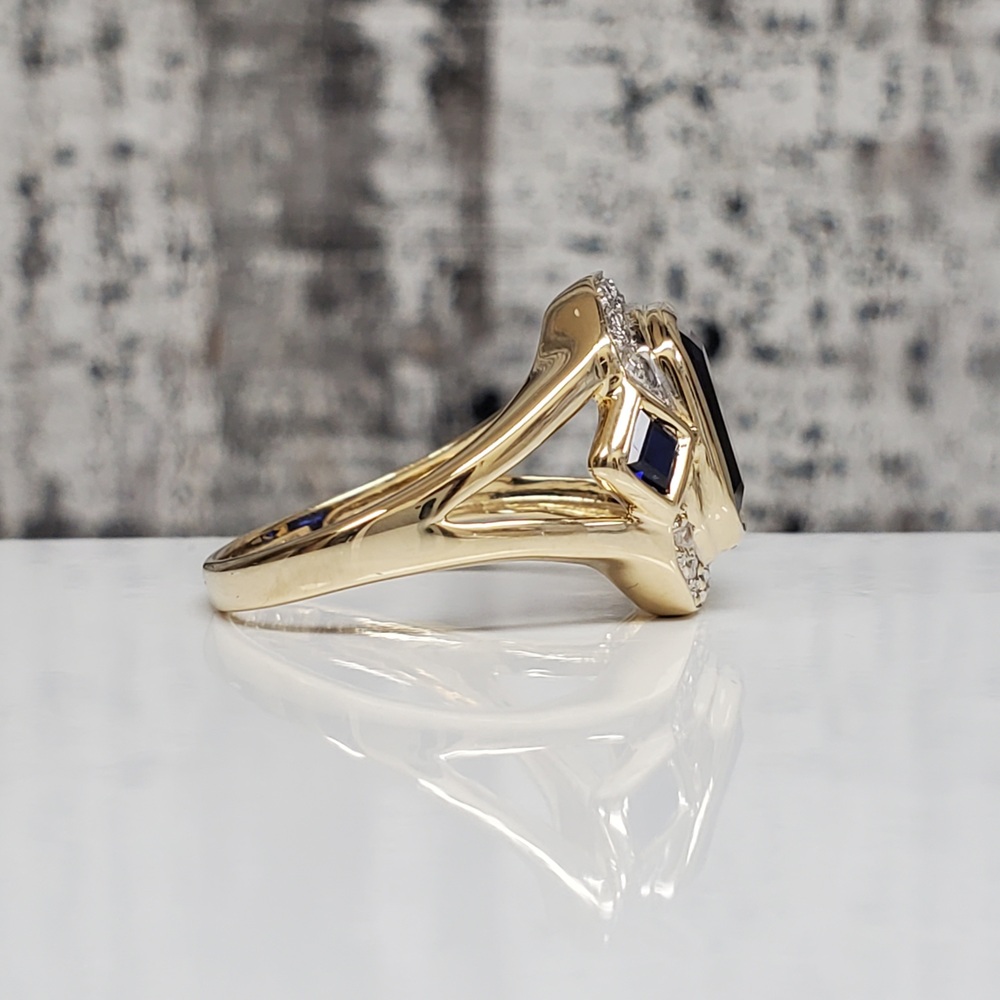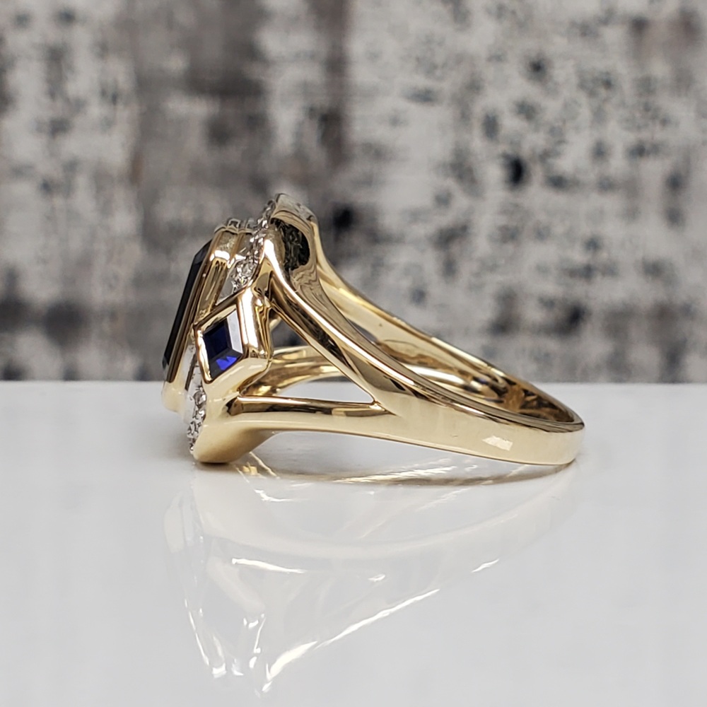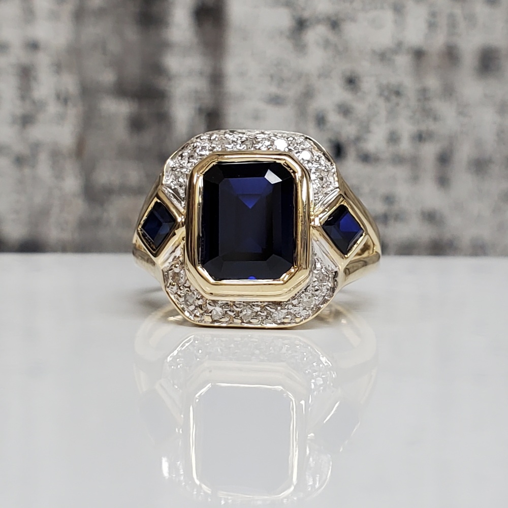 We have this stunning 14K Diamond + Synth Sapphire Ring For sale!