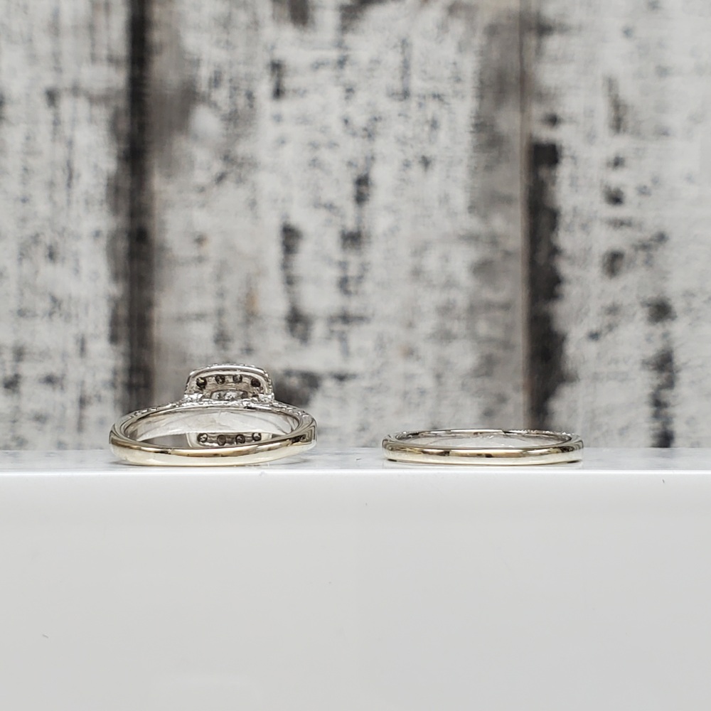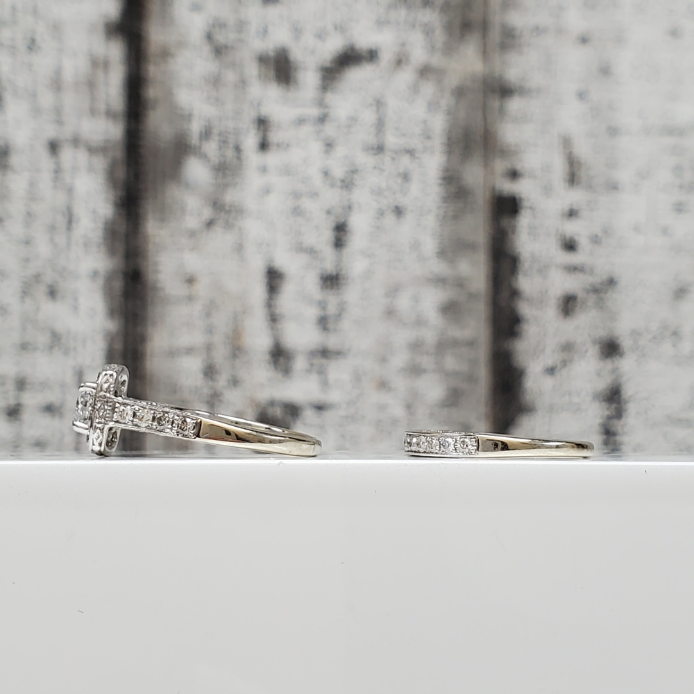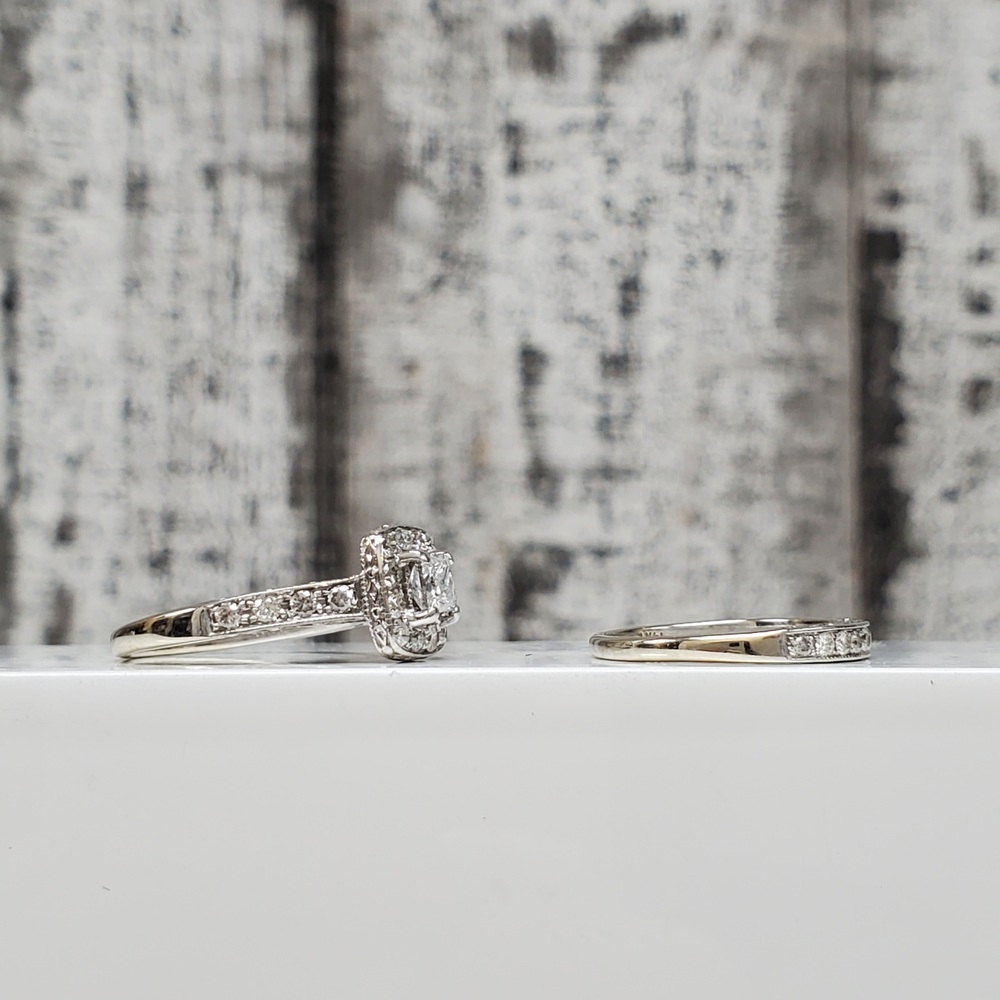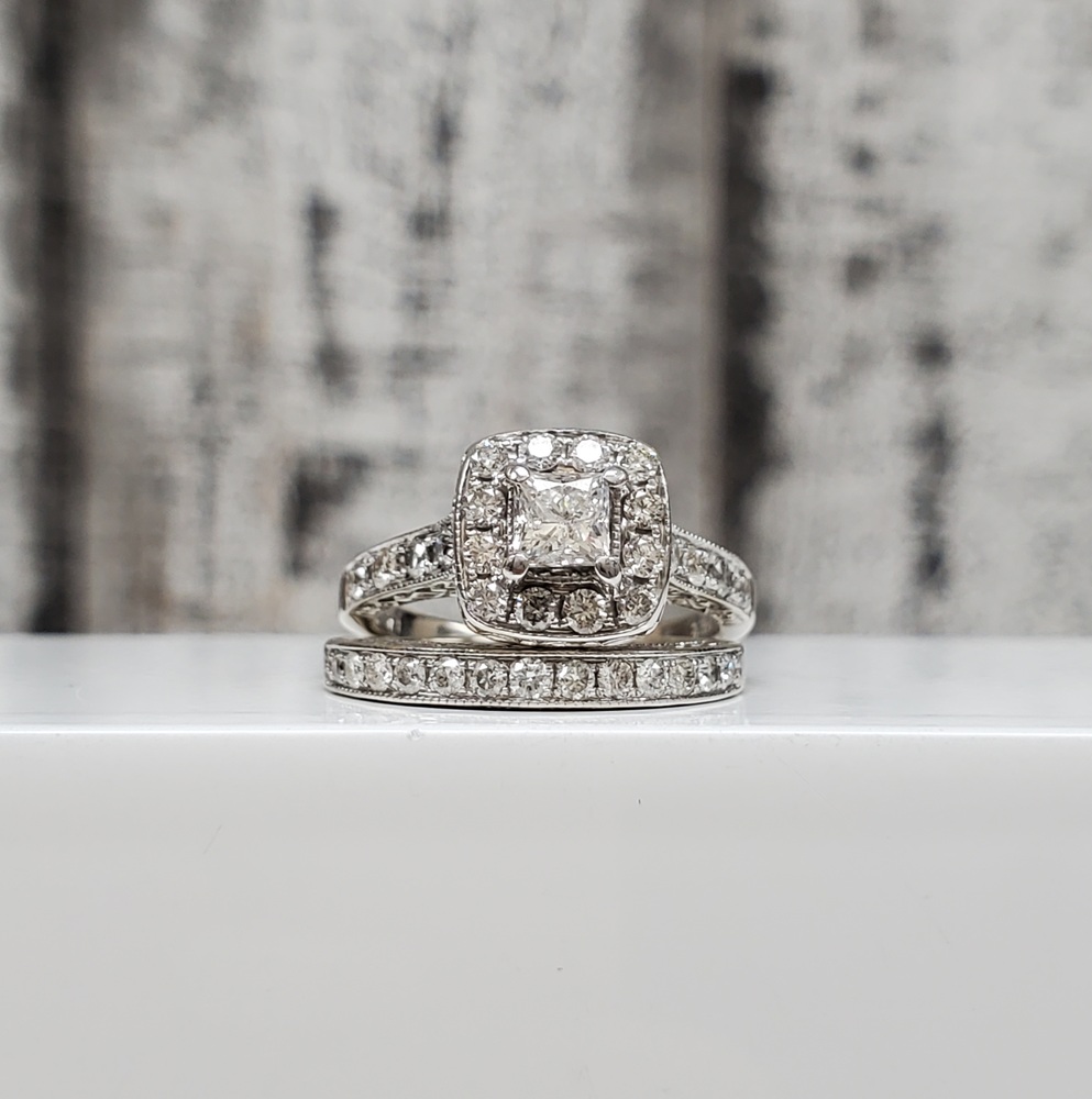 Carat Total Weight: Est. .30ctr Princess Cut Diamonds + Est. .50ctw Round Brilliant Diamonds + Est. .33ctw Round Brilliant Diamonds (Band)