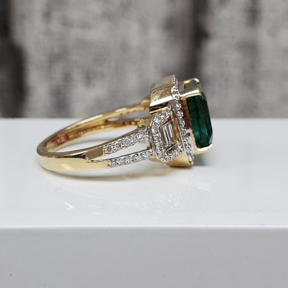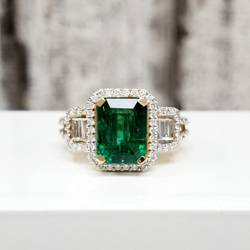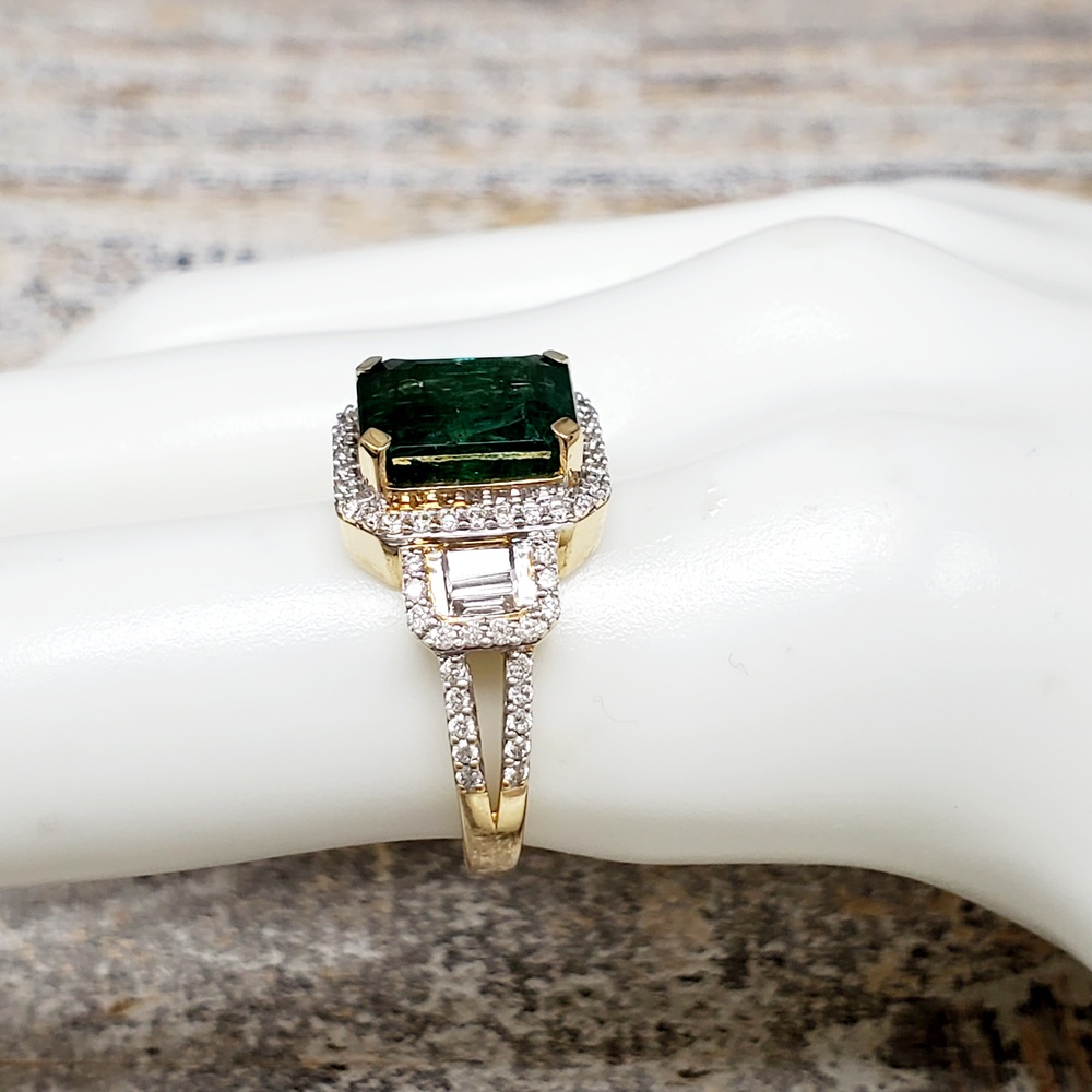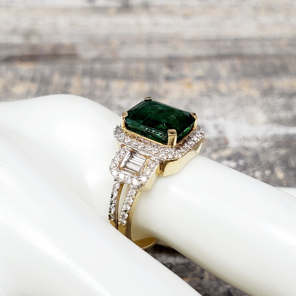 Carat Total Weight: Est. .36ctw Round Brilliant Diamonds + Baguette Diamonds + 3.7ct Emerald