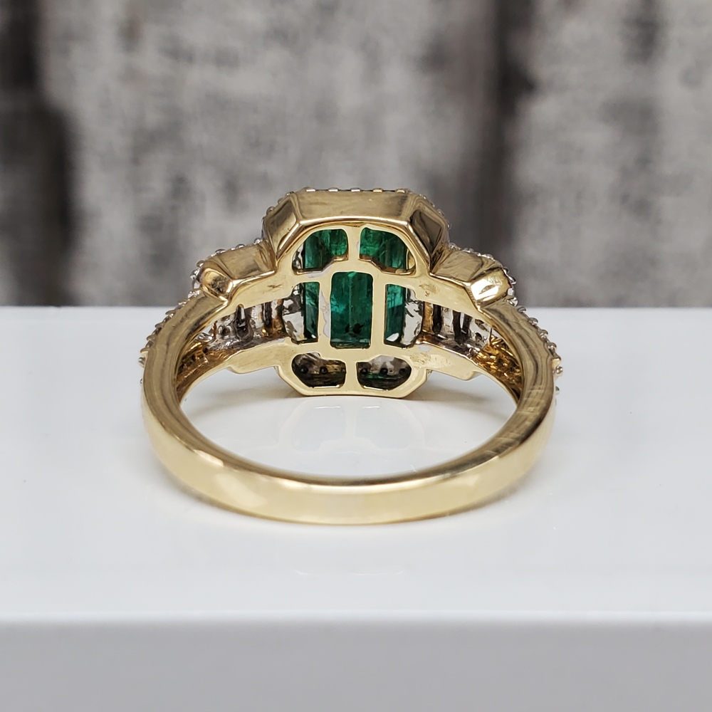 We have this stunning 14K Emerald + Diamond Ring for sale!