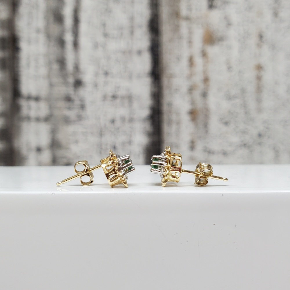We have this stunning 14K Emeralds Flower Design Stud Earrings for sale!