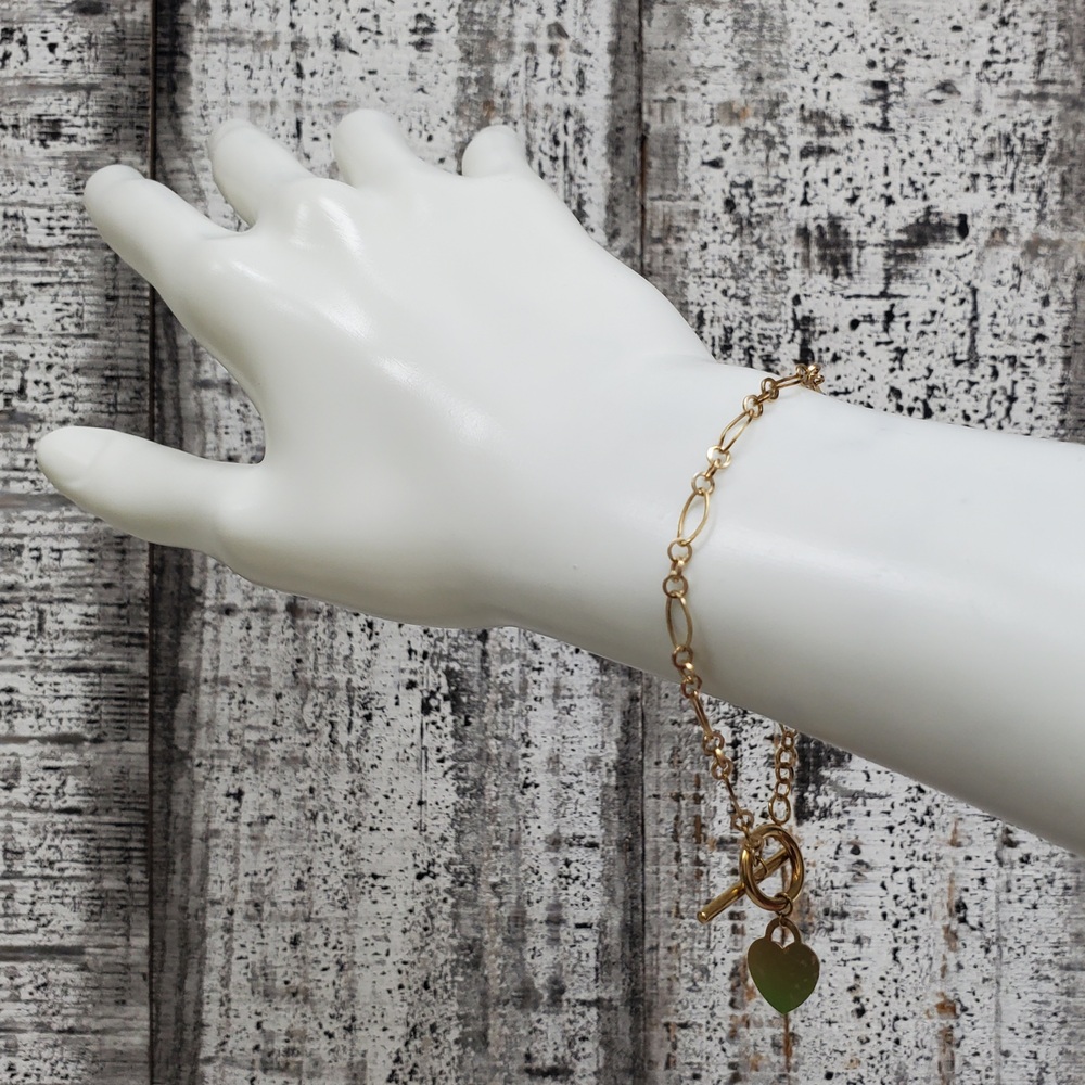 We have this stunning 14K Fancy Bracelet w/ Heart Charm For sale!