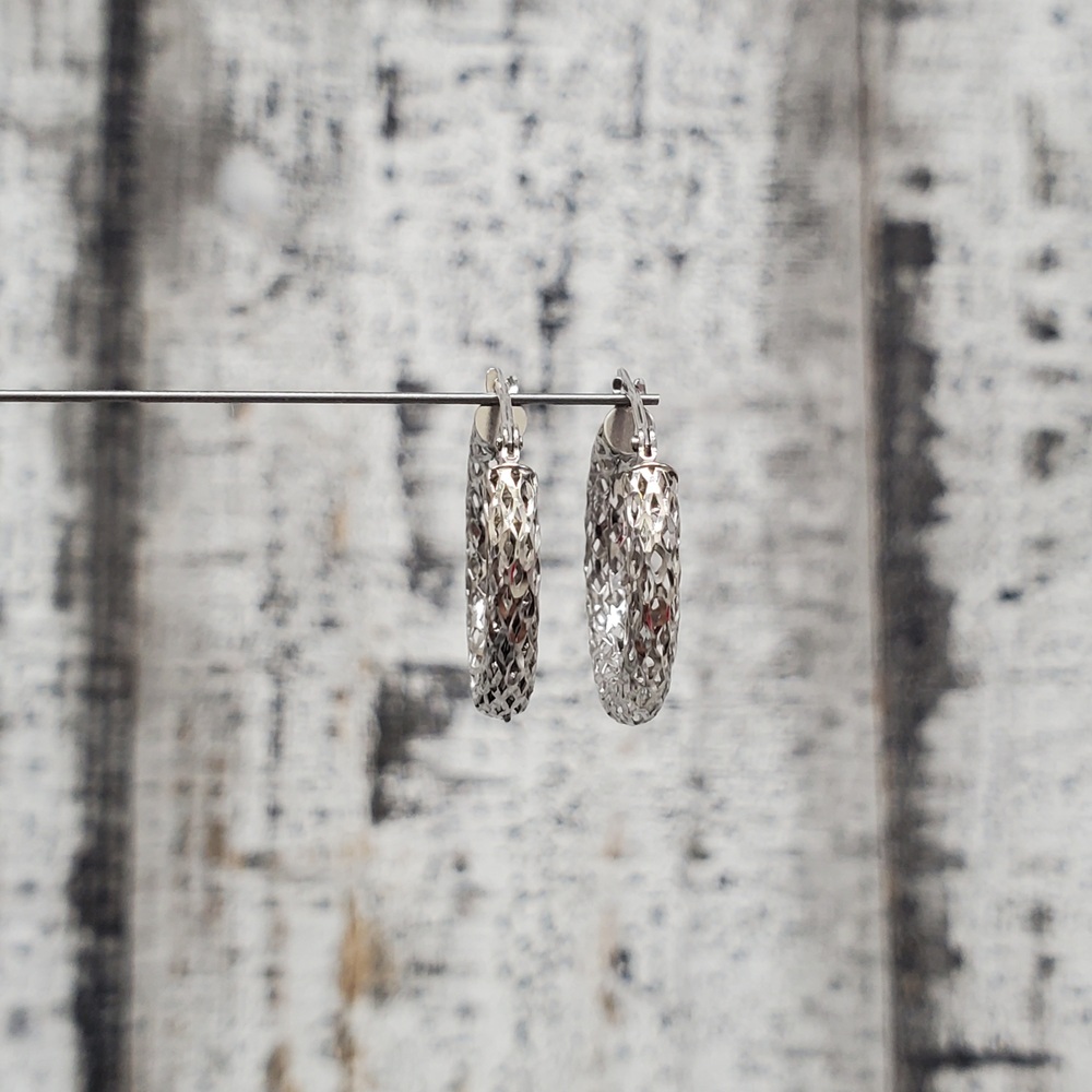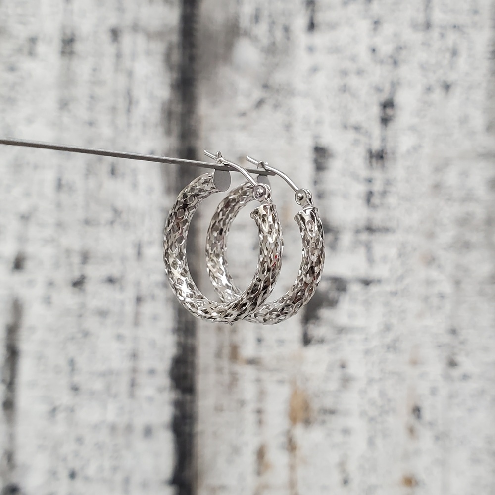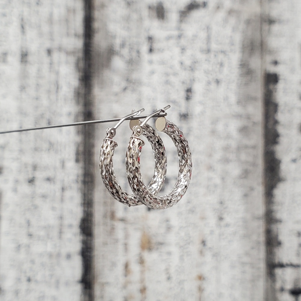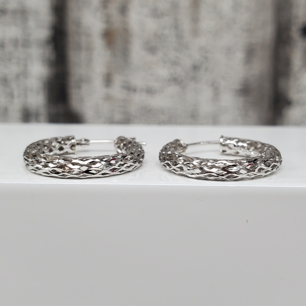 We have this stunning 14K Fancy Cut Design Hoop Earrings for sale!