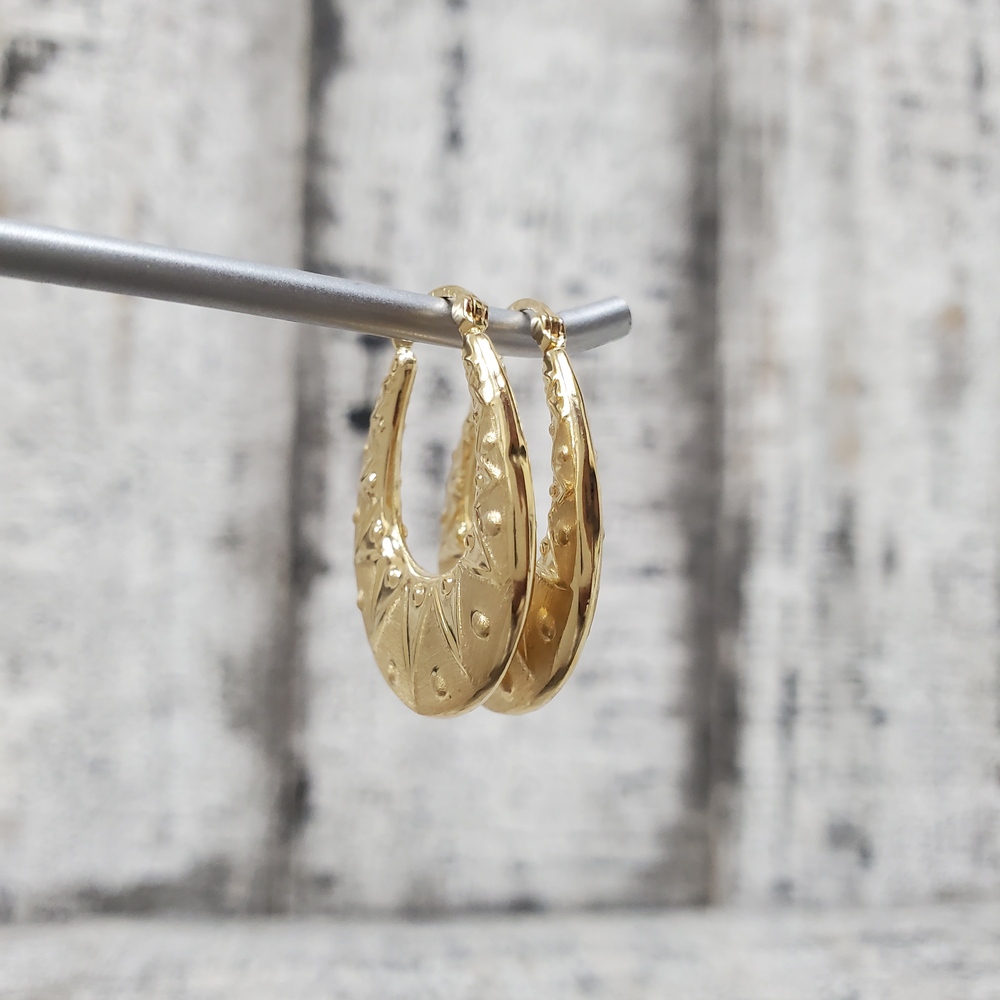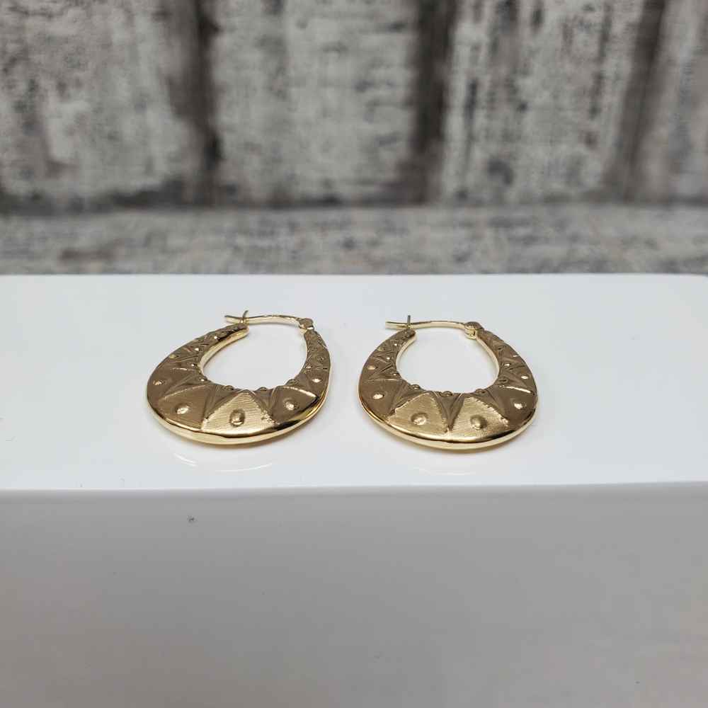 We have this stunning 14K Fancy Design Hoop Earrings for sale!