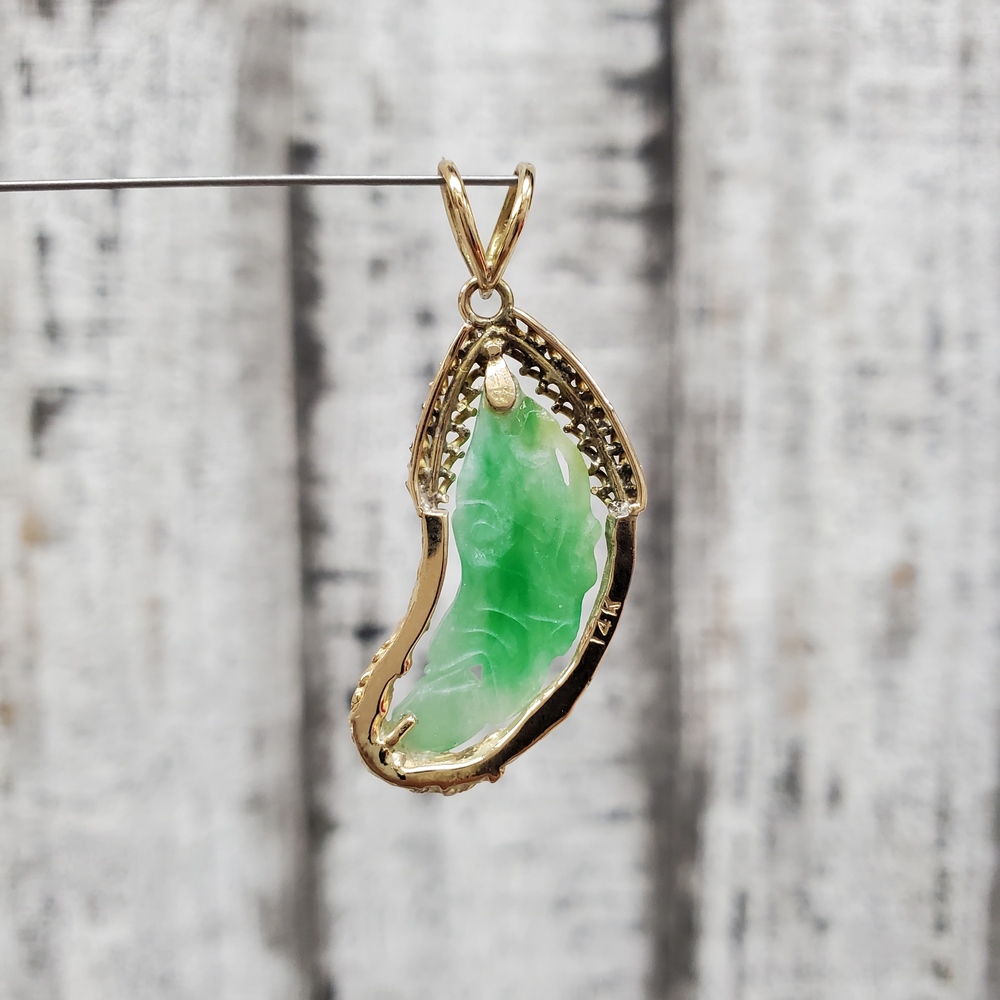We have this stunning 14K Fancy Jade Pendant for sale!