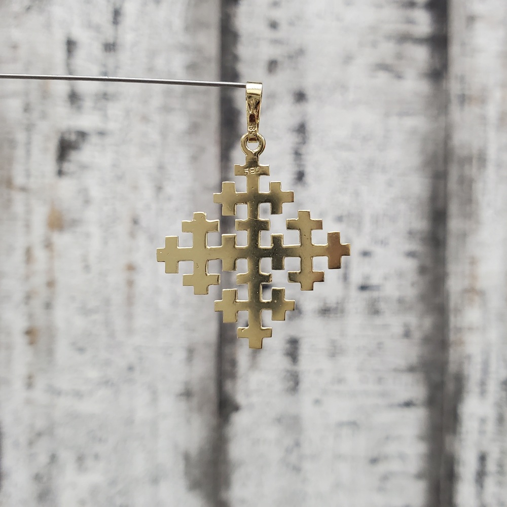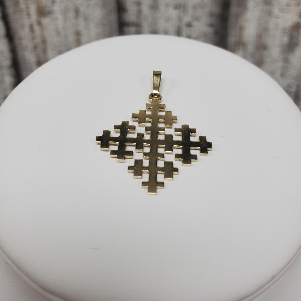 We have this stunning 14K Fancy Jerusalem Cross Religious Pendant for sale!